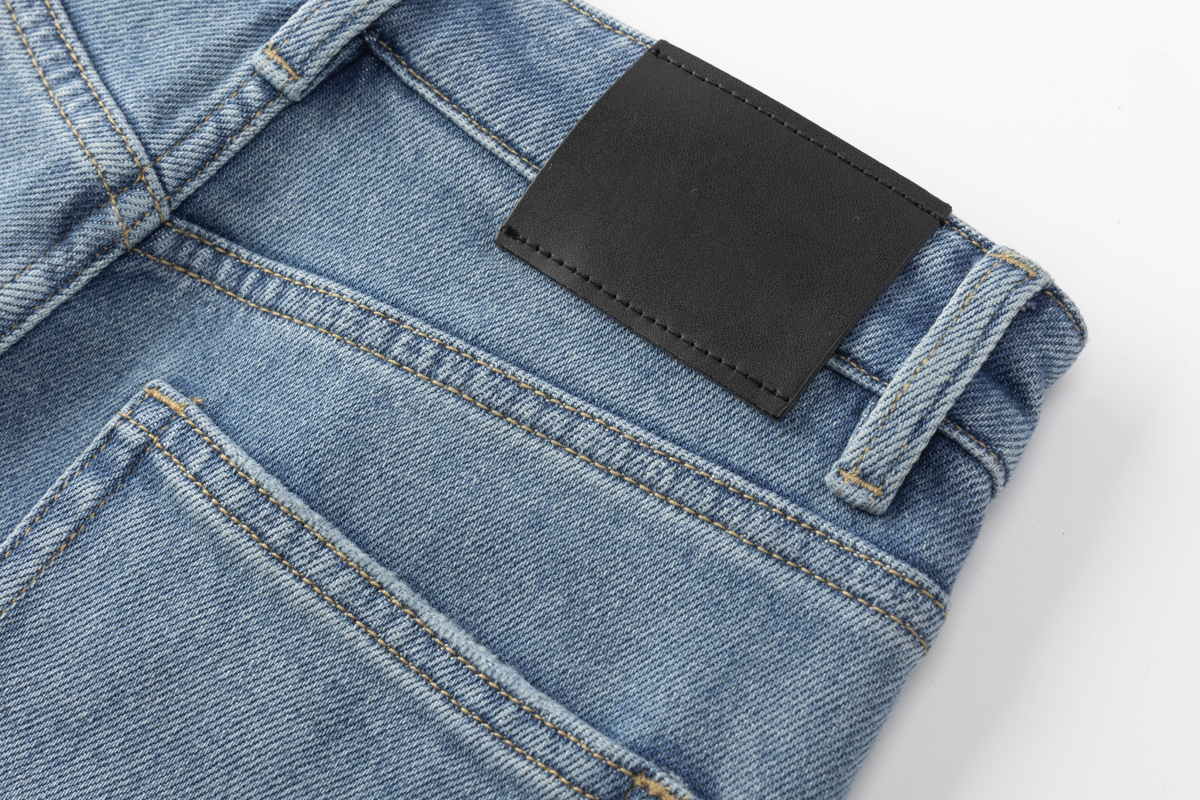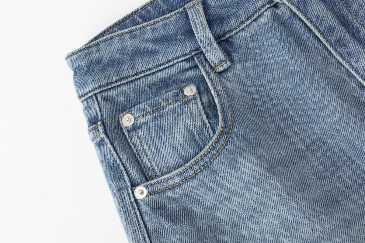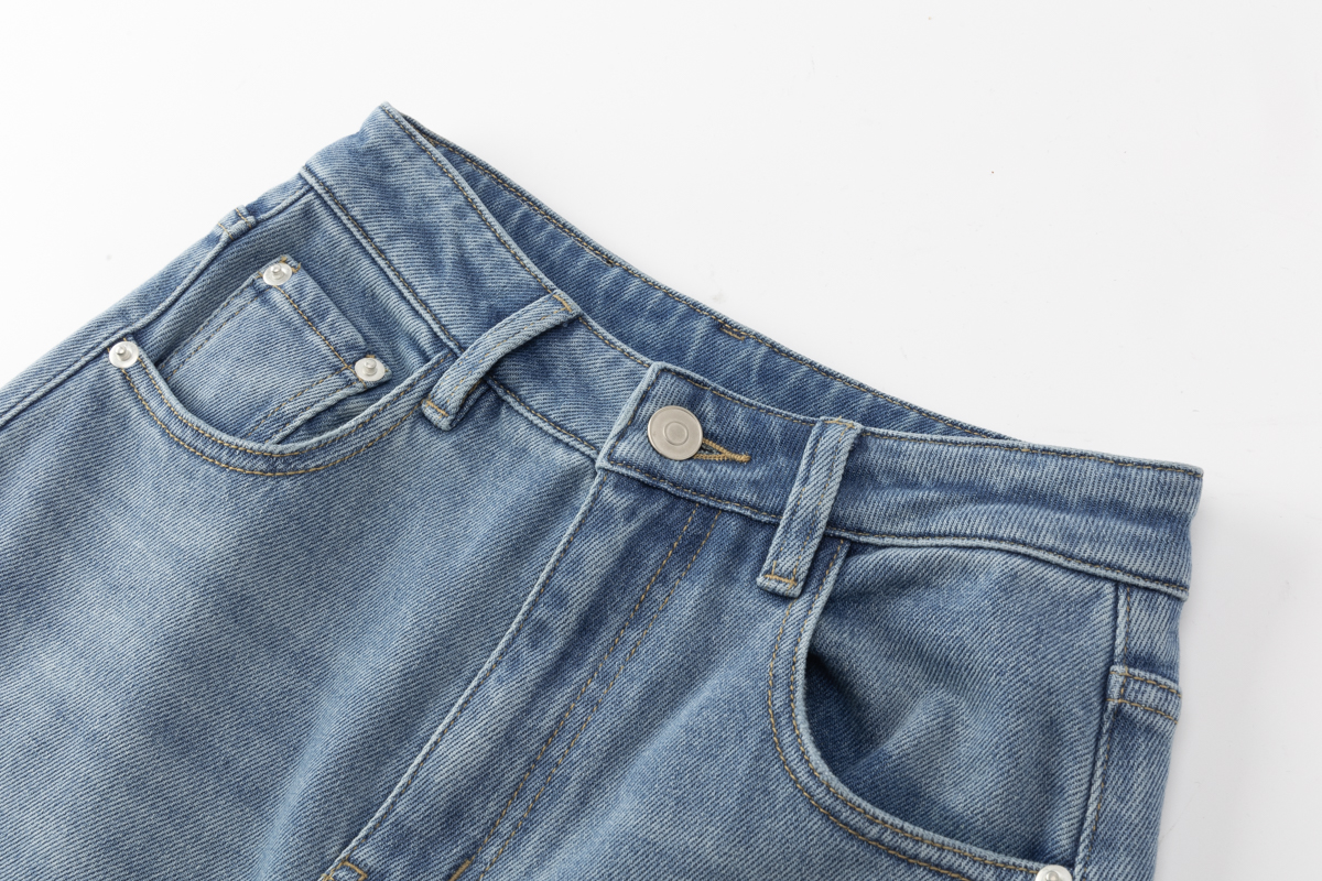 COCO ZONE 刘 一一 侧边弧形拼接做旧牛仔裤 CD1A1677