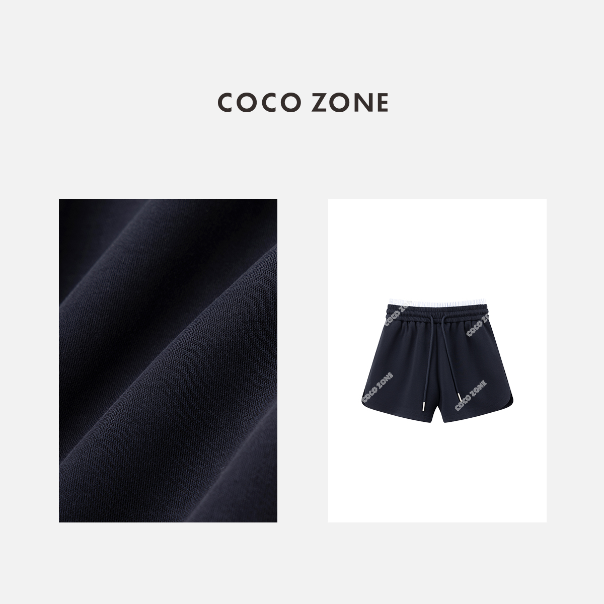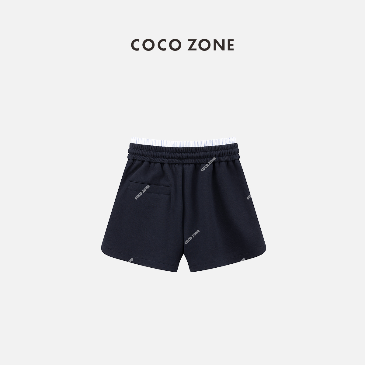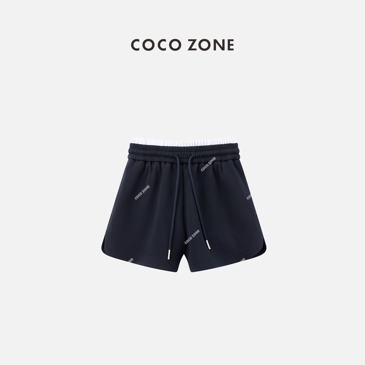 COCO ZONE2024"撞蓝条短裤”夏季休闲松紧腰抽绳短裤简约百搭通勤裤CC1B0746