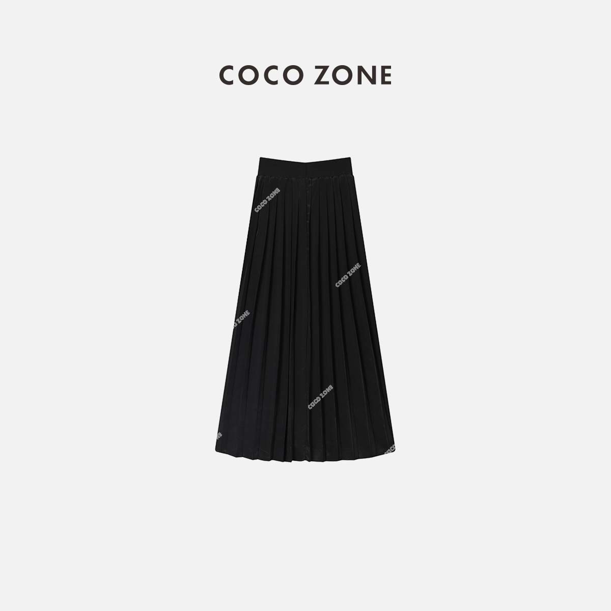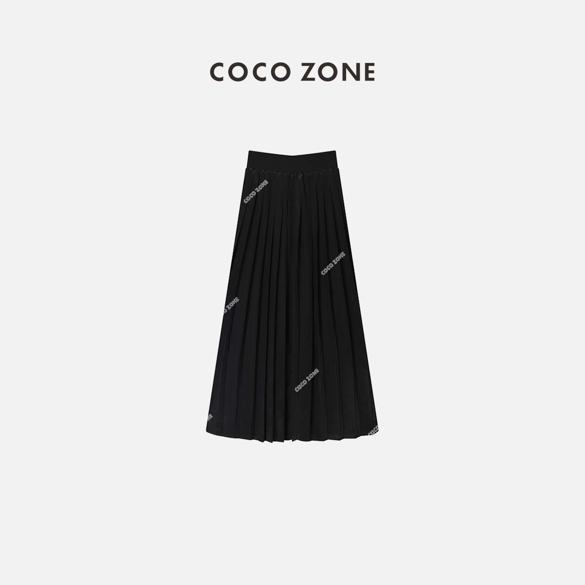 COCO ZONE 法式气质黑色百褶裙中长款a字松紧腰半身裙 23C18600