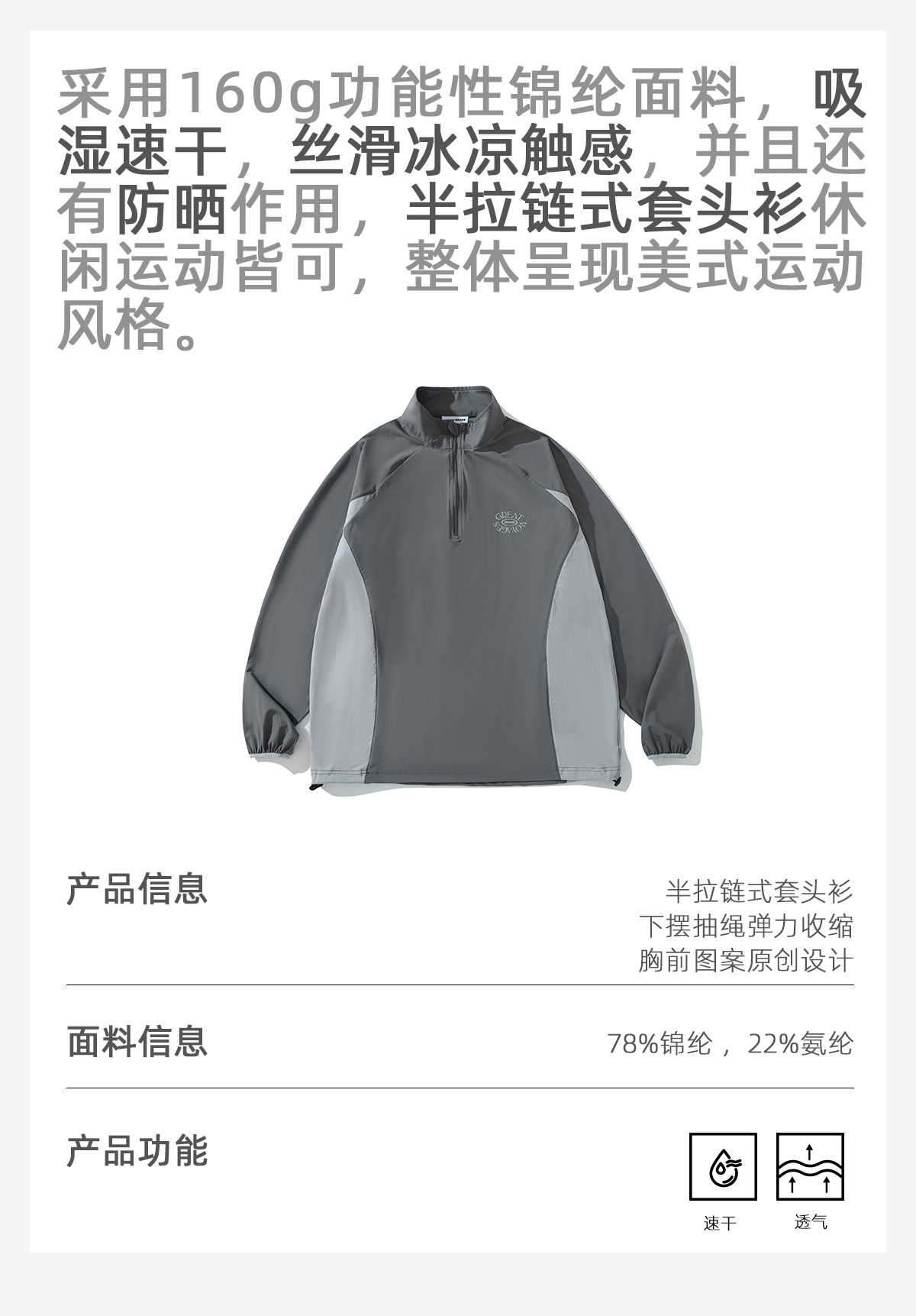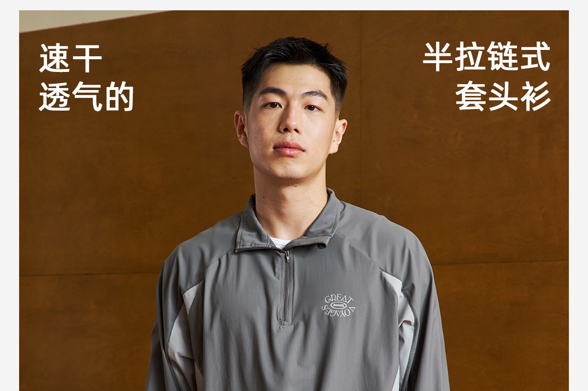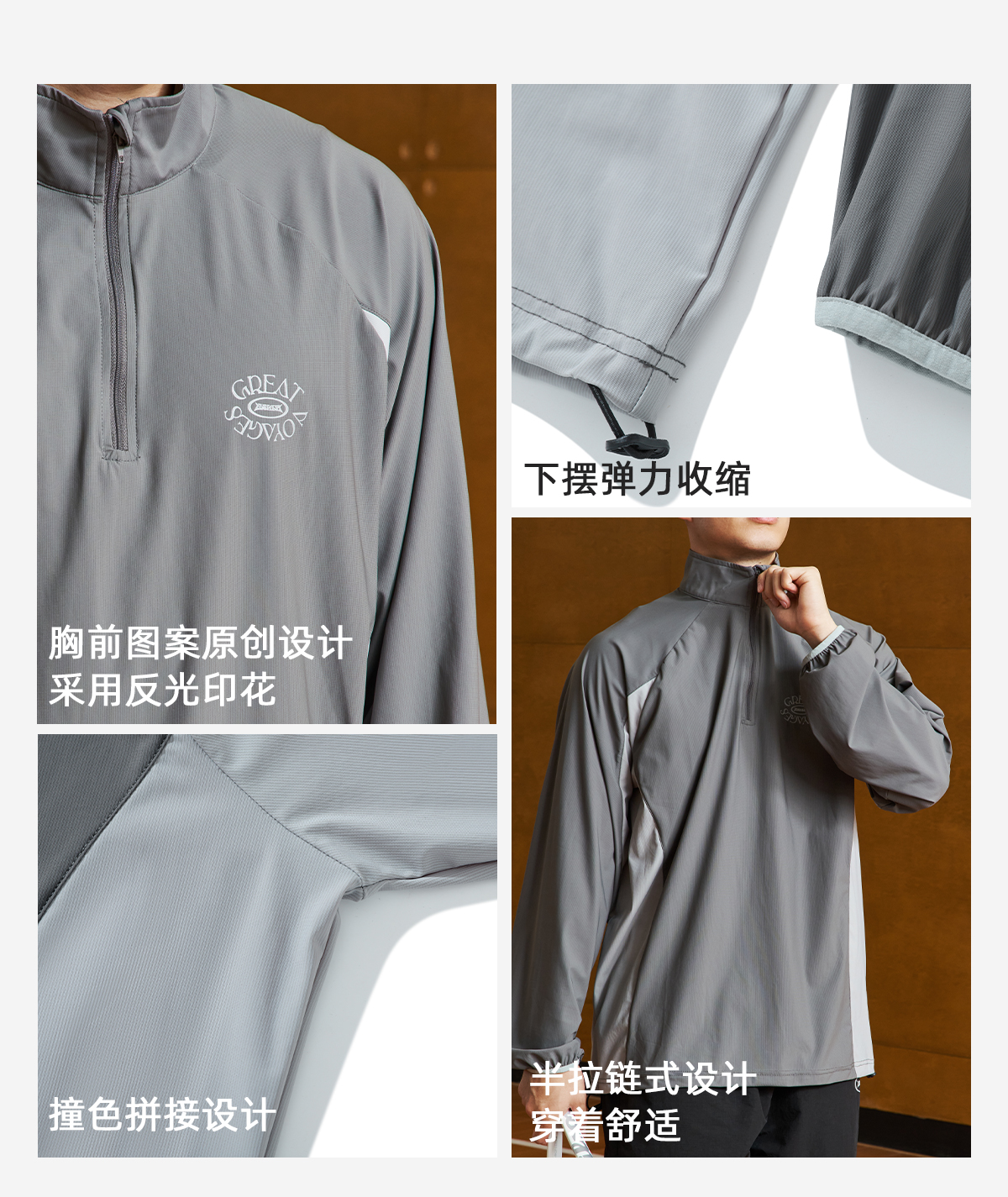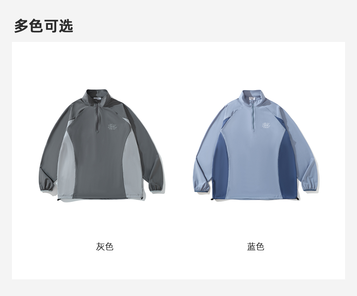 LUSHISI吸湿速干抽绳设计半拉链速干运动T恤长袖POLO伟大航行主题