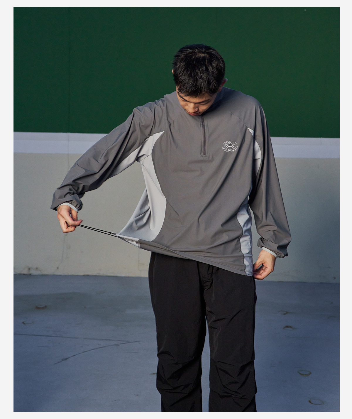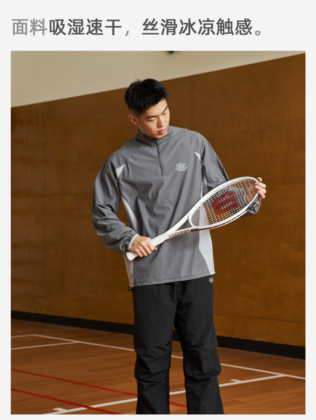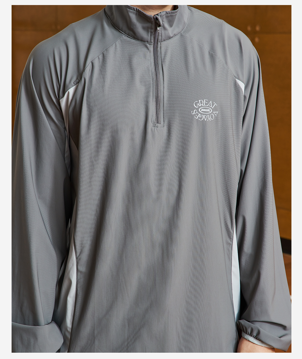 LUSHISI吸湿速干抽绳设计半拉链速干运动T恤长袖POLO伟大航行主题