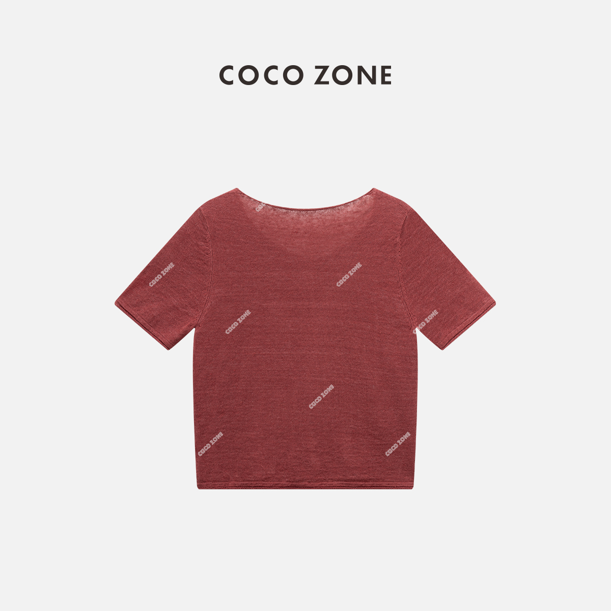 COCO ZONE"入手三件“夏季简约U领毛针织衫复古时尚百搭短袖上衣CC1B1191