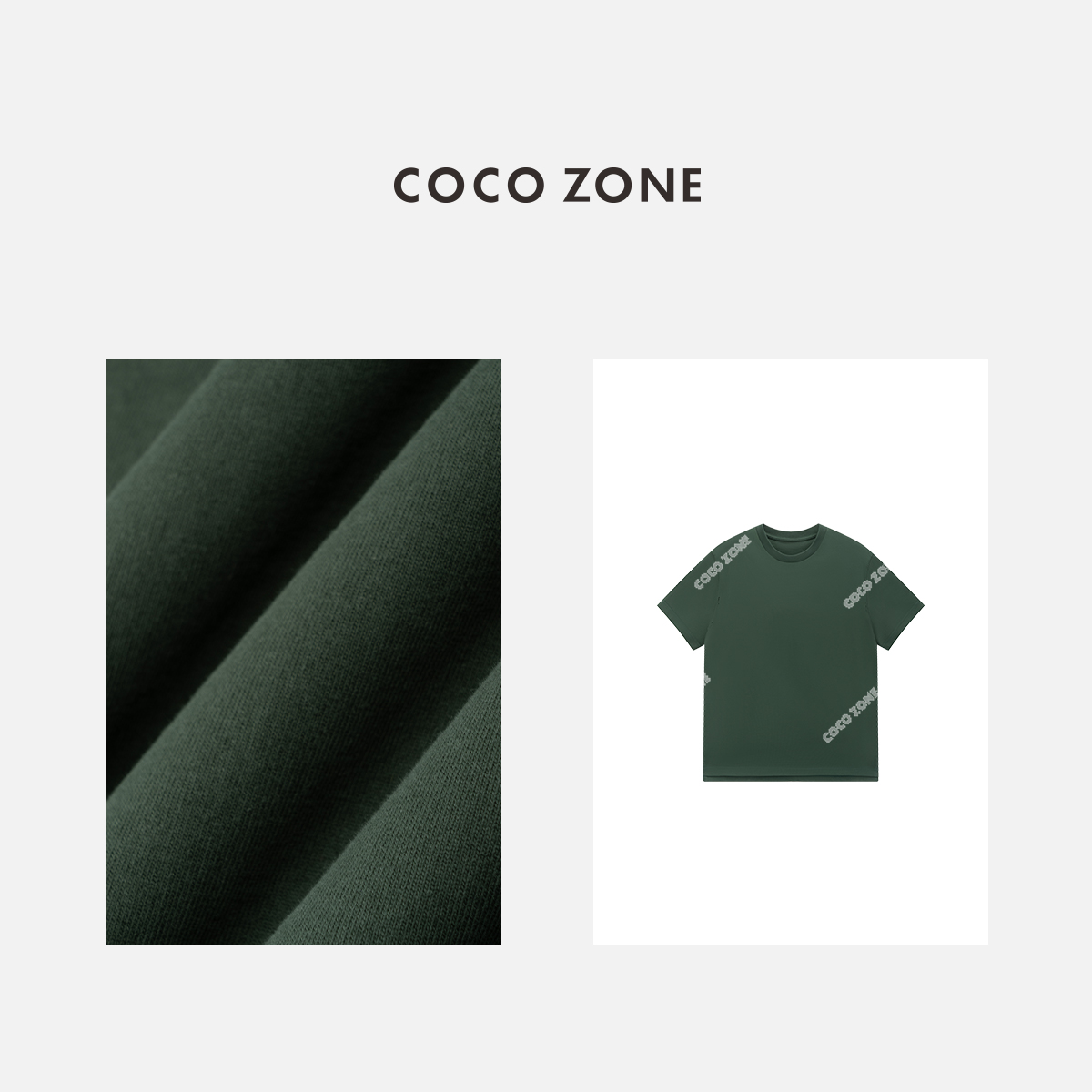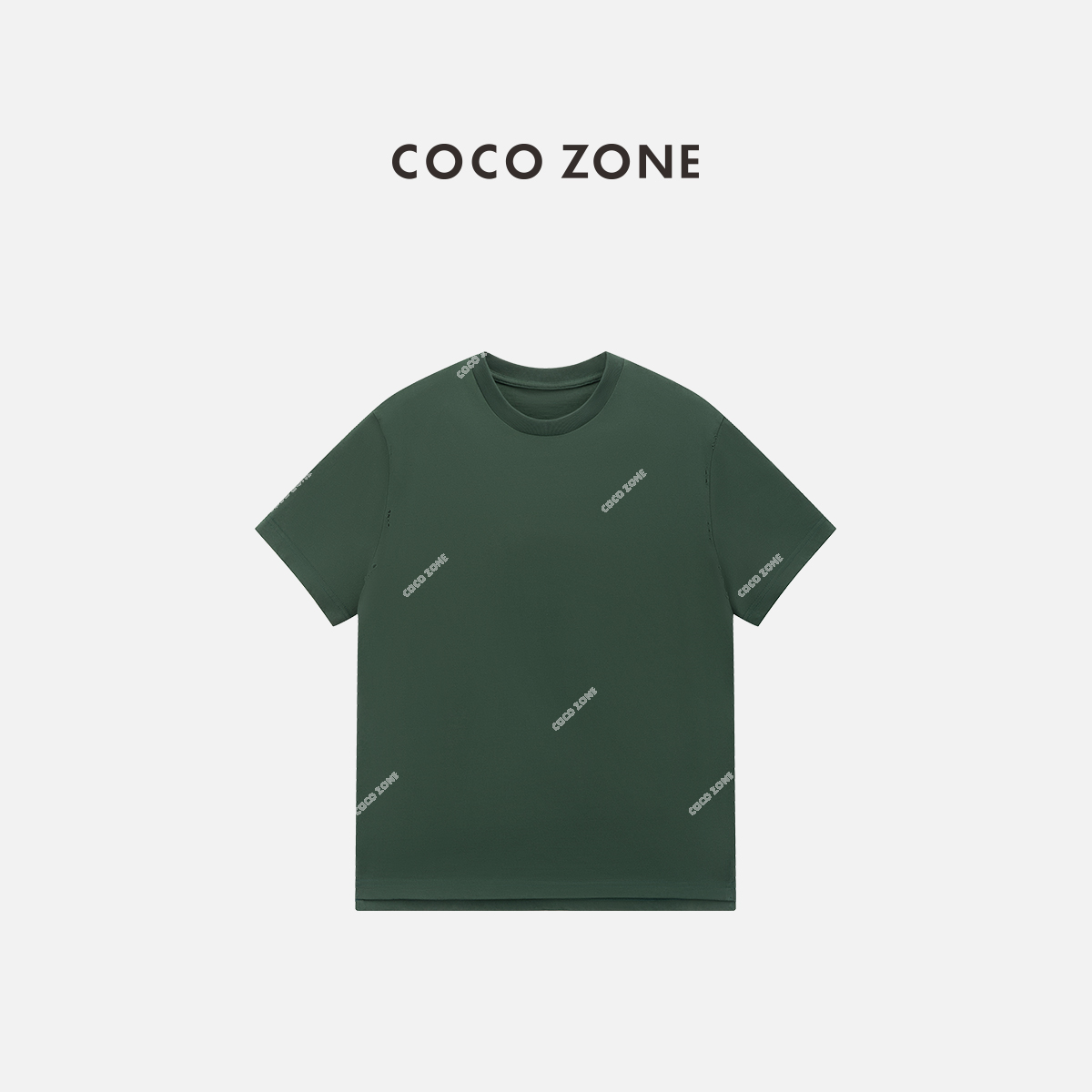 COCO ZONE ”墨绿T“夏季简约圆领短袖T恤开叉设计上衣CC1C1680
