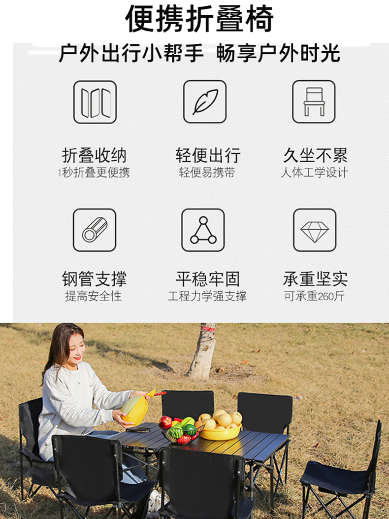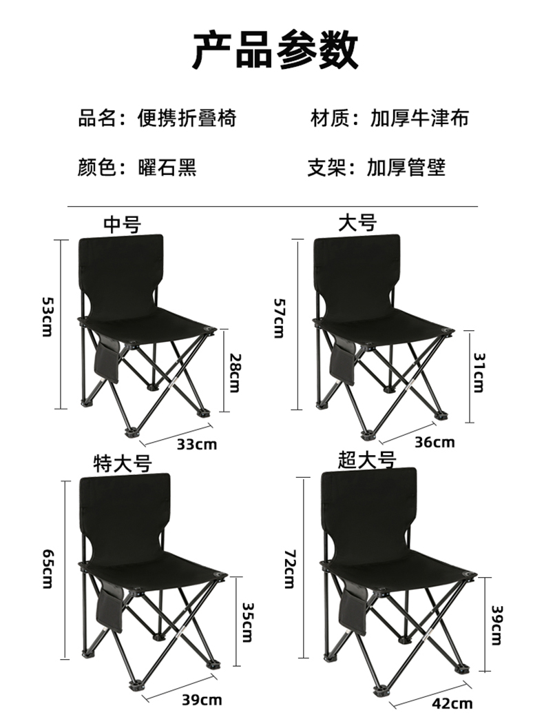 路悠悠黑色折叠椅(特大号L黑)ZC0739
