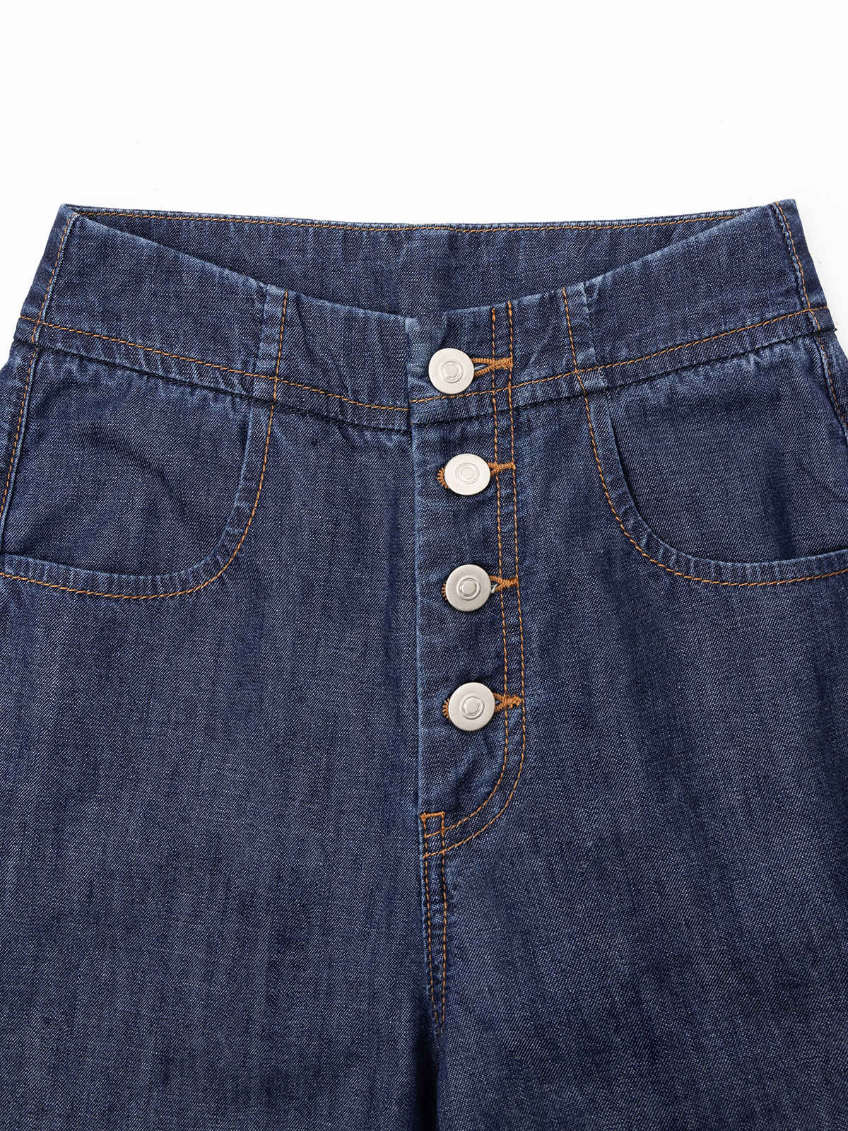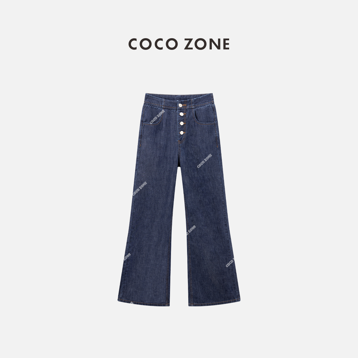 COCO ZONE 2024"薄牛“夏季时尚单排扣设计牛仔裤气质百搭长裤CC1B0735