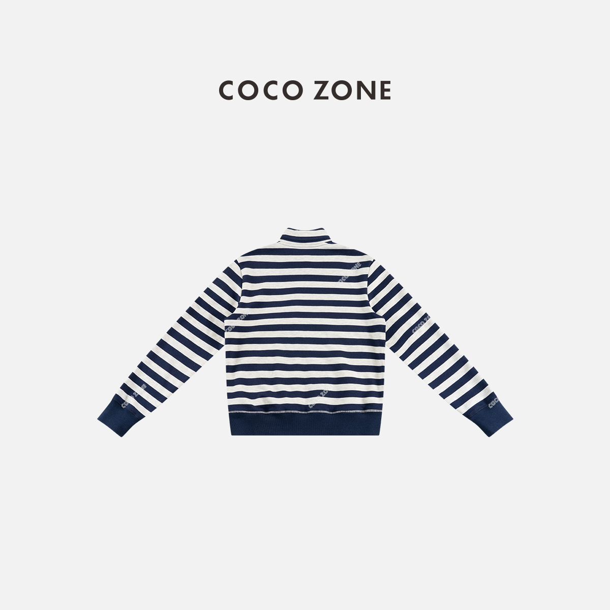 COCO ZONE 美式条纹撞色立领休闲显瘦拉链外套CD1A0020