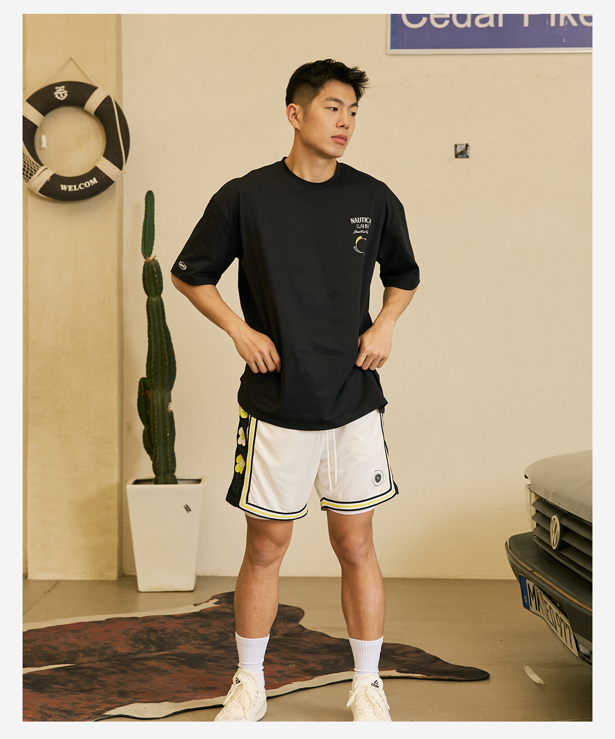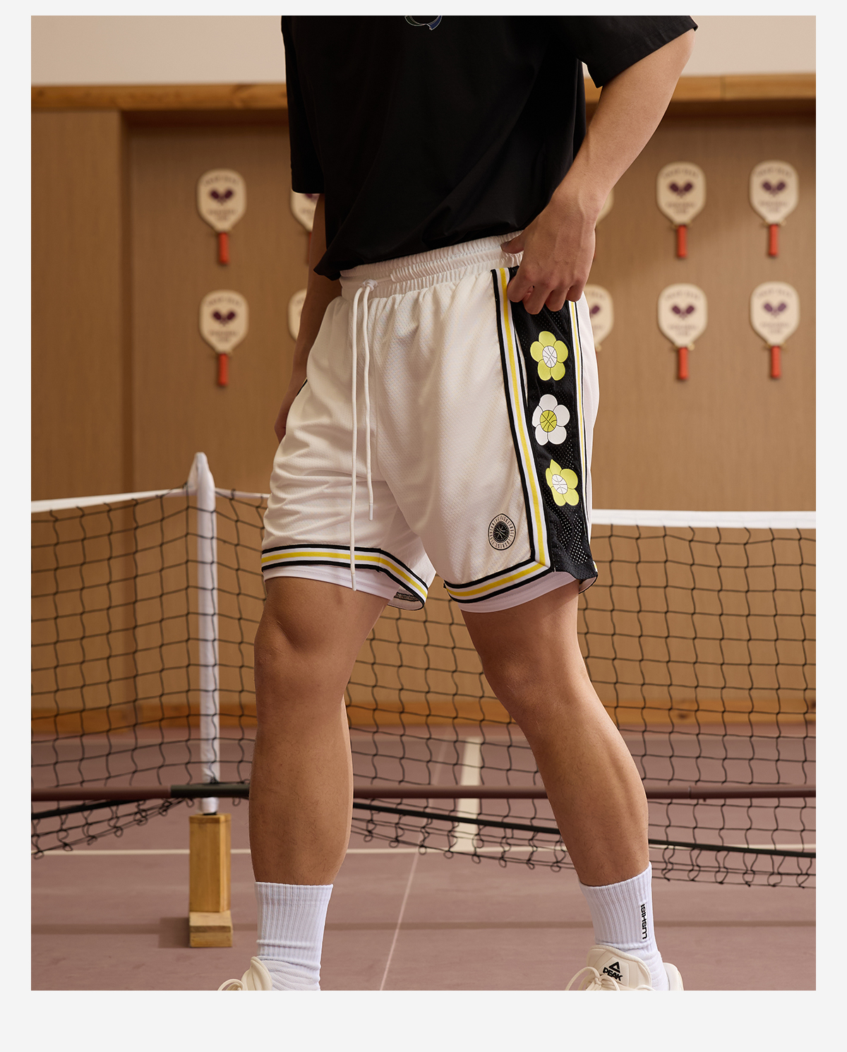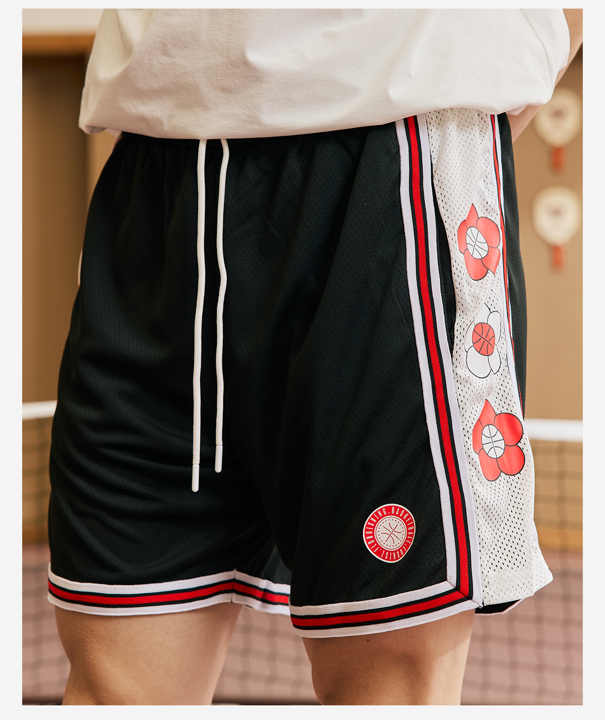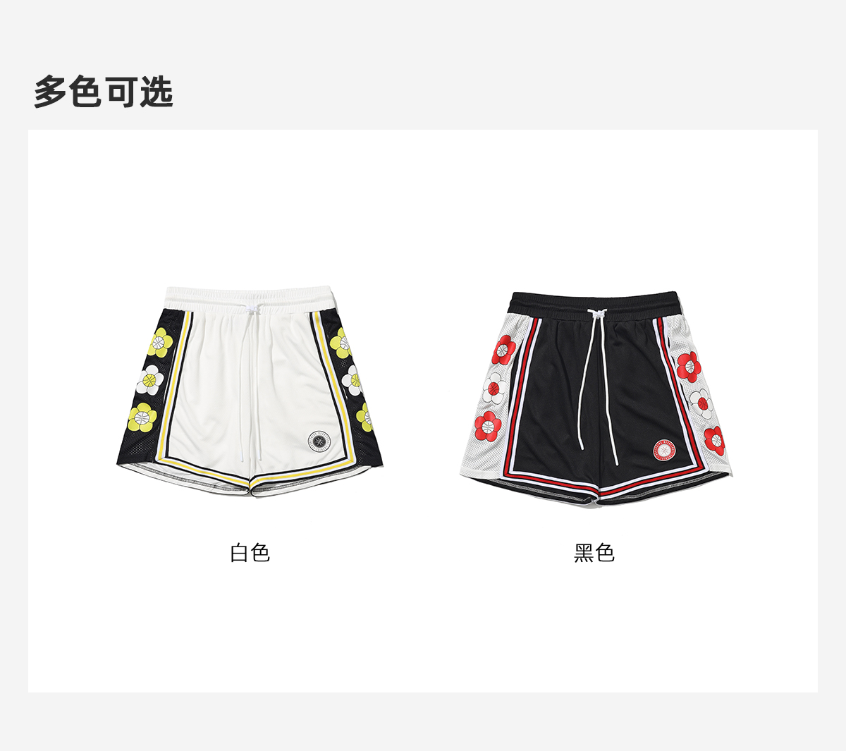 LUSHISI夏若繁花主题短裤美式休闲街头运动四五分拼接抽绳运动裤