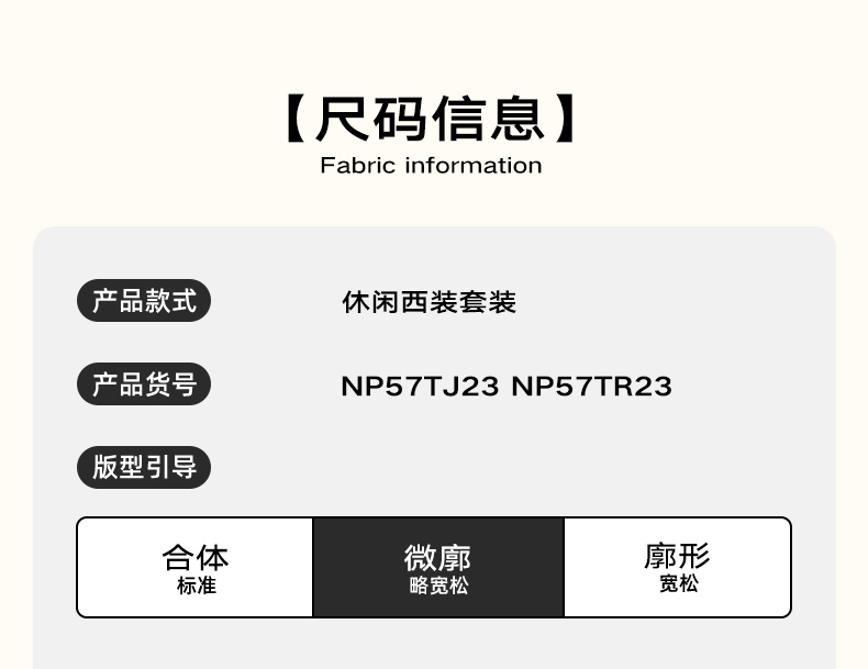 NPC2025秋季新品潮牌商务休闲宽松抗褶皱西服套装NP57TJ23