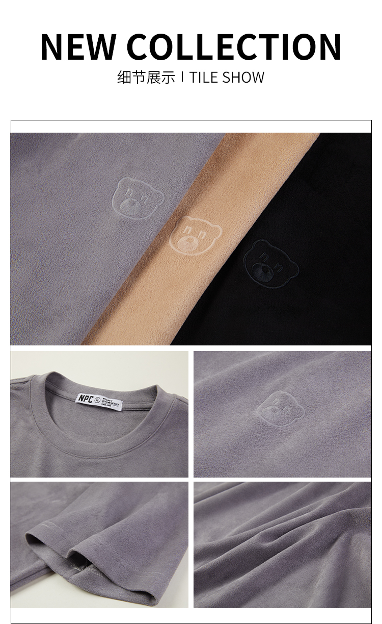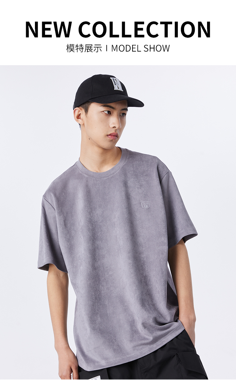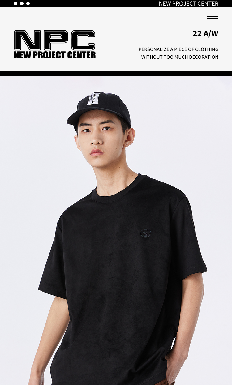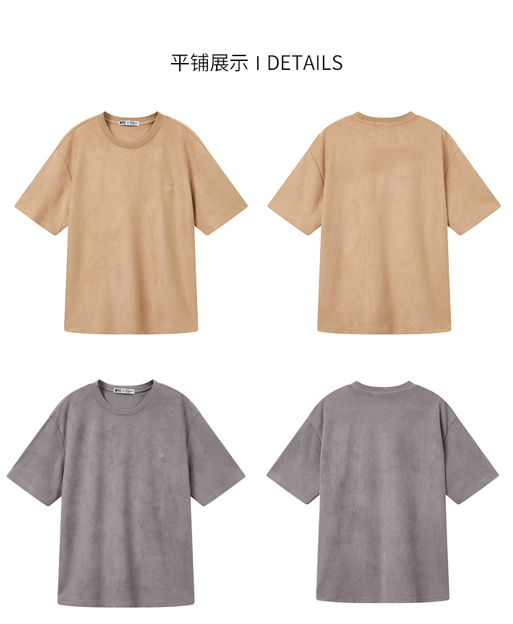 NPC潮牌夏新款仿麂皮绒短袖T恤简约潮流上衣NP33TE23
