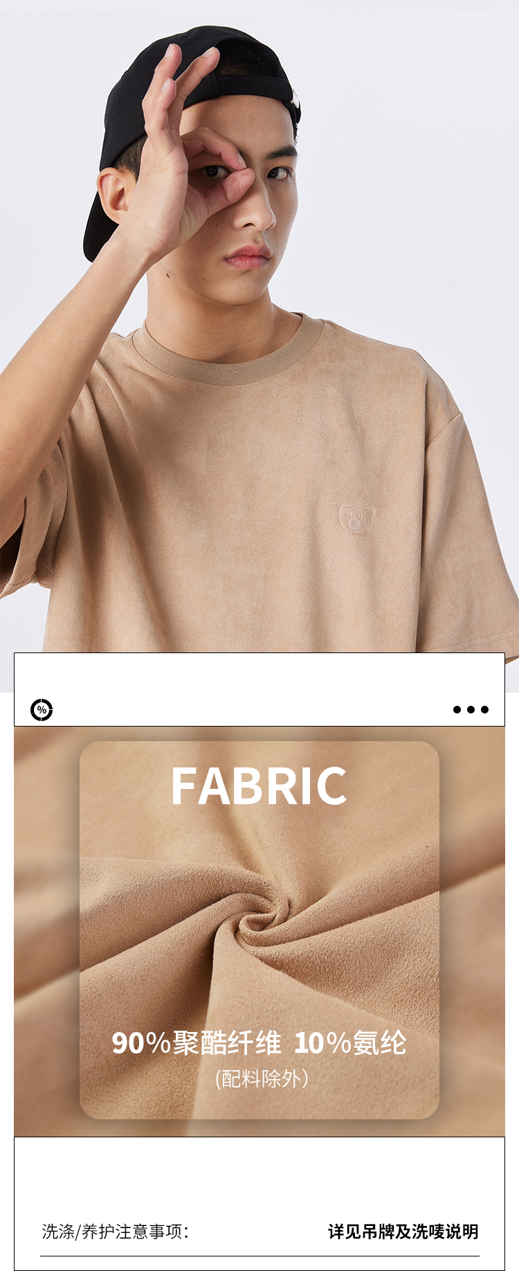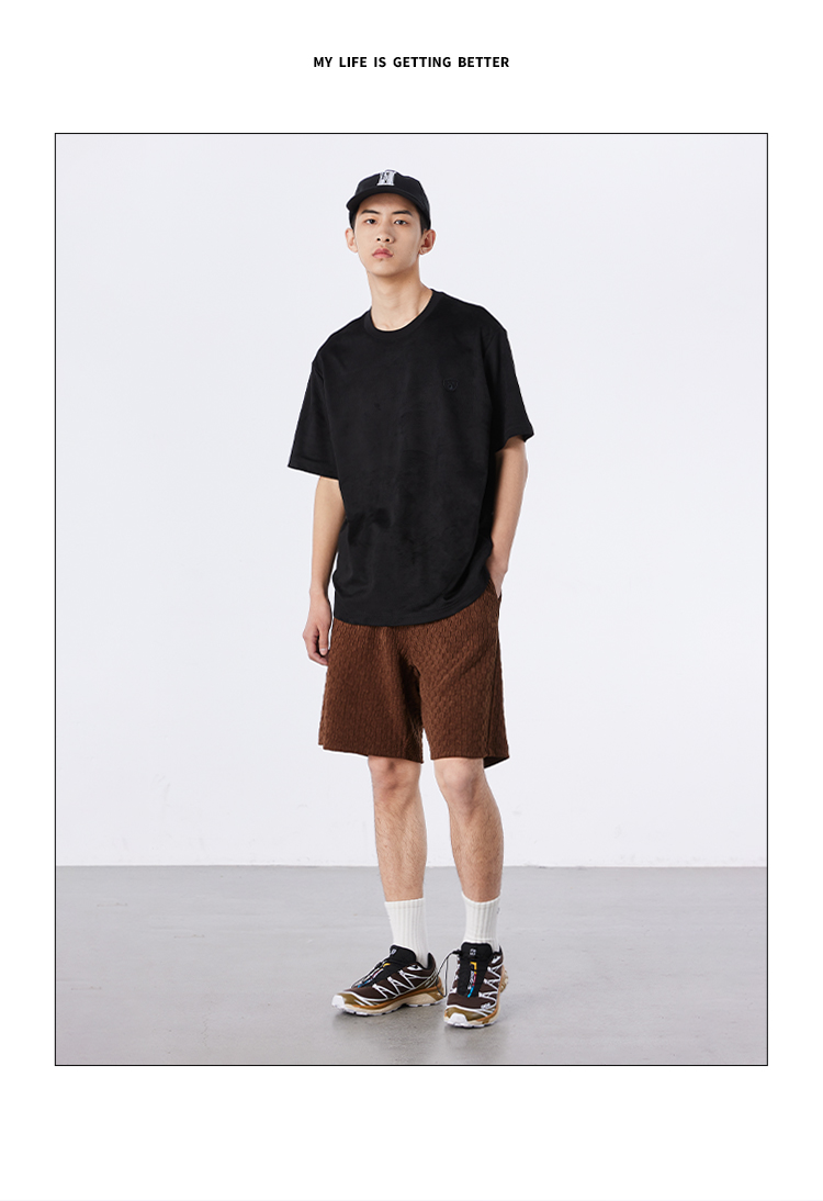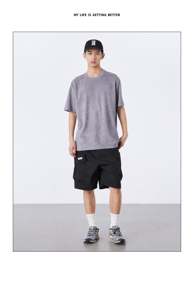 NPC潮牌夏新款仿麂皮绒短袖T恤简约潮流上衣NP33TE23
