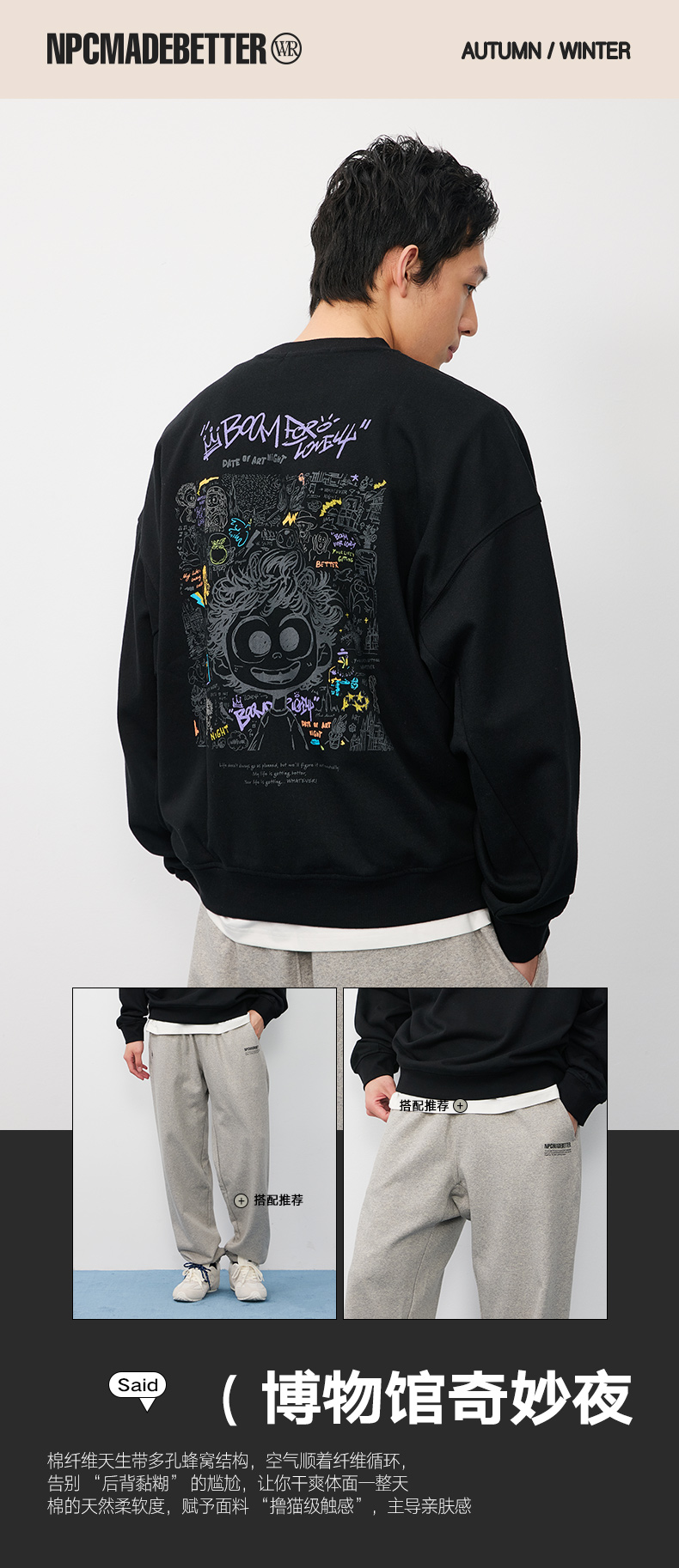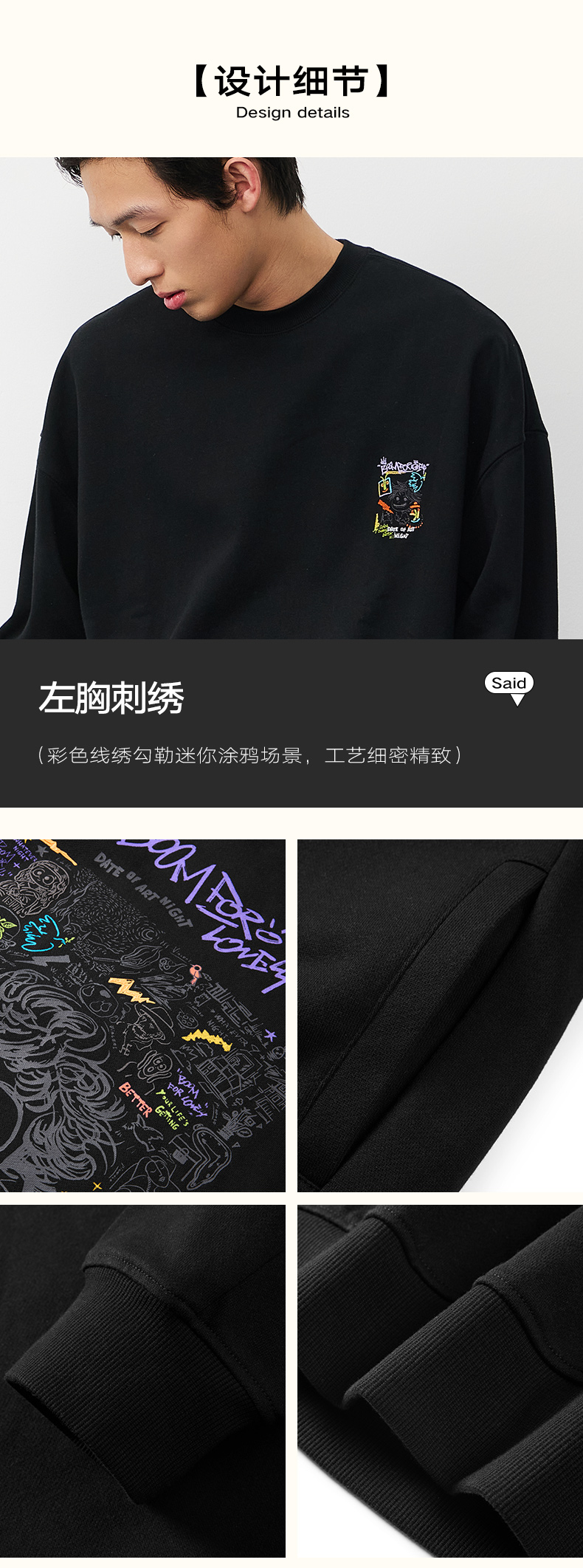 潮牌【博物馆系列】彩色绣线涂鸦印花长袖卫衣宽松舒适NP57ST45