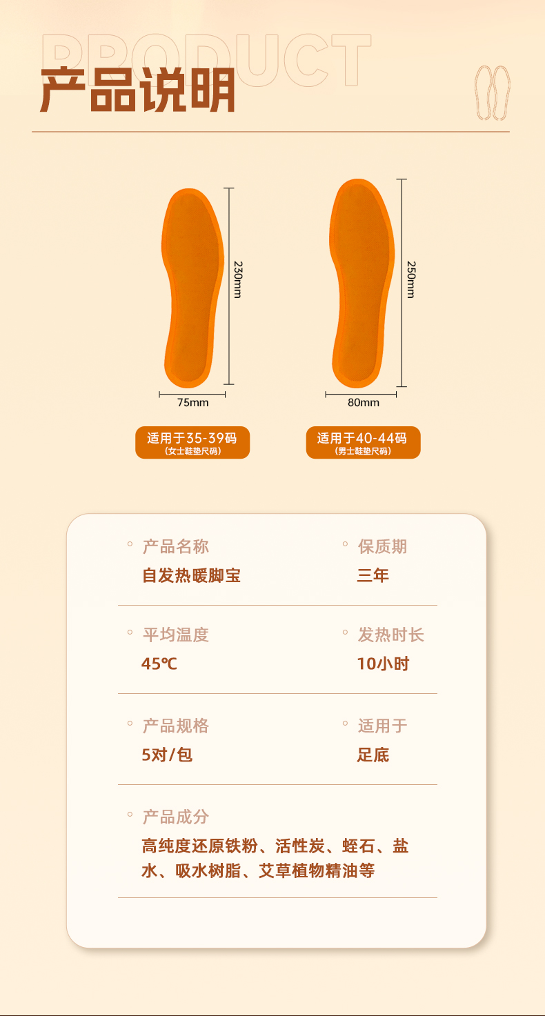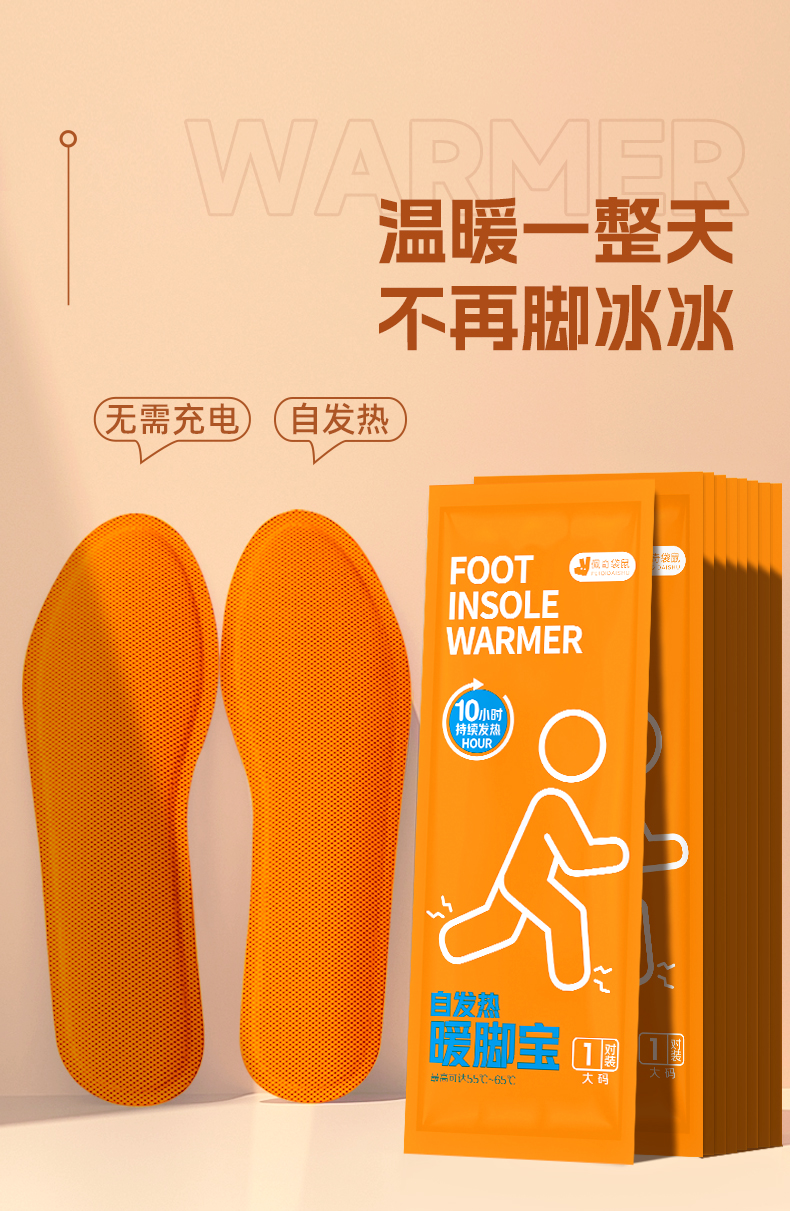 佩奇袋鼠 暖宝宝贴自发热暖贴暖身贴冬季暖腰腹贴 橙色鞋垫大码20片