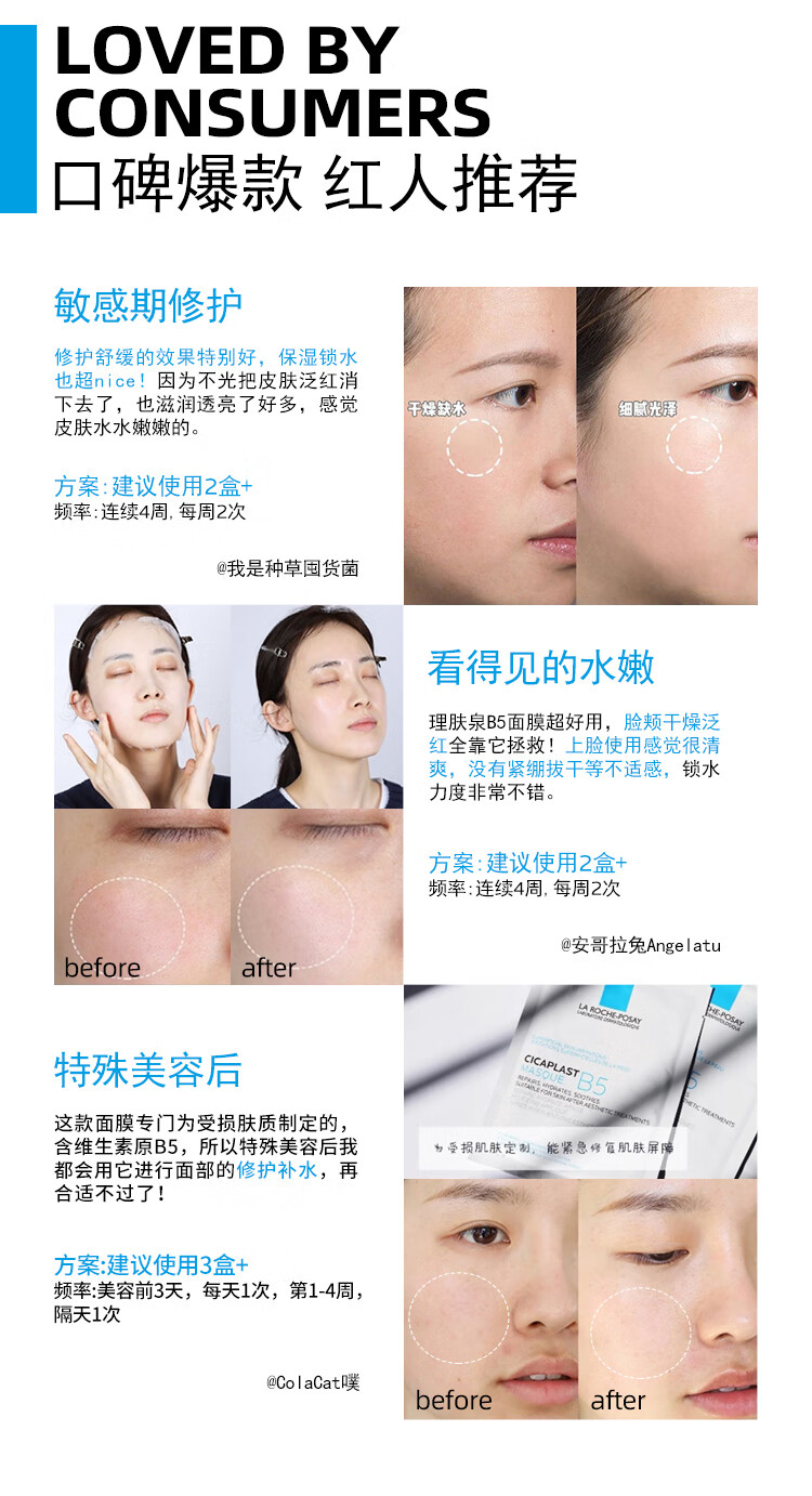 理肤泉 B5多效保湿修复面膜(B5面膜)25g*5 —盒装