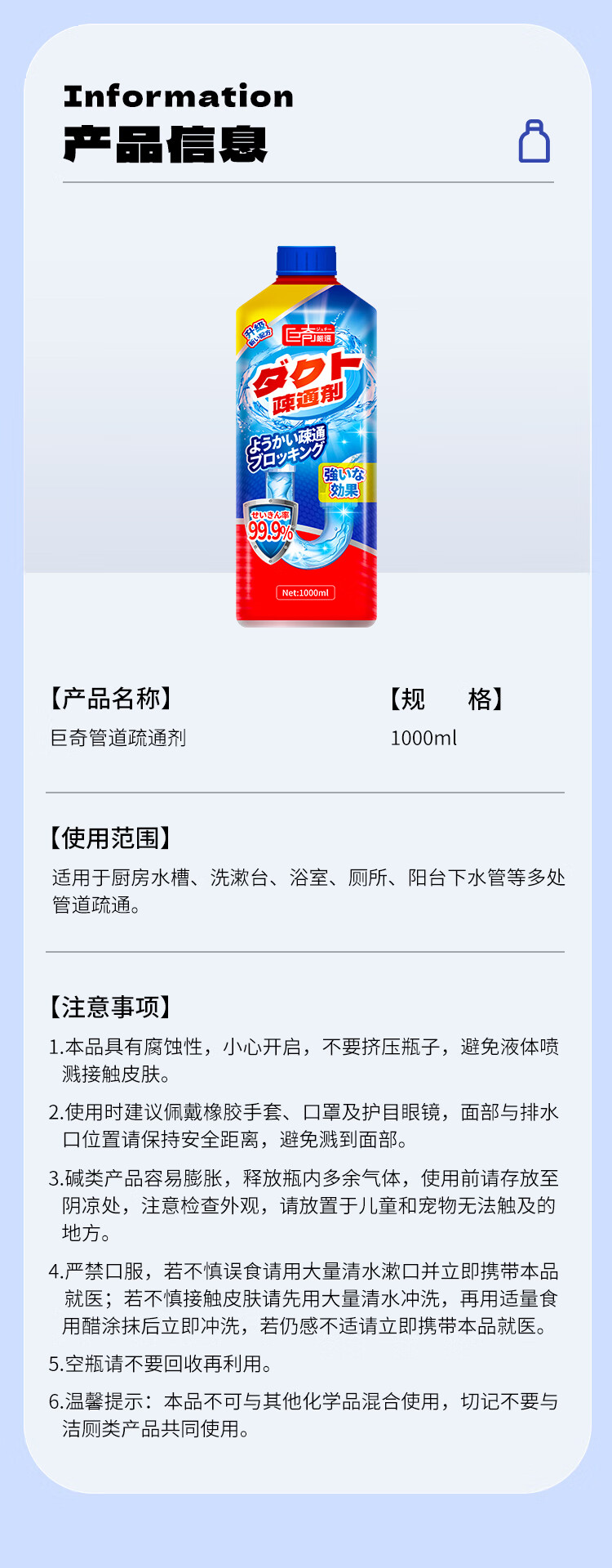 巨奇-管道疏通液1000ml