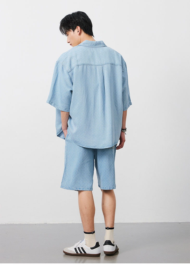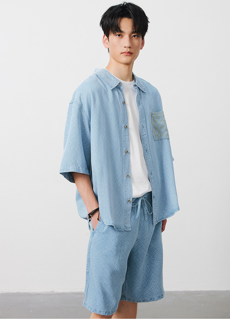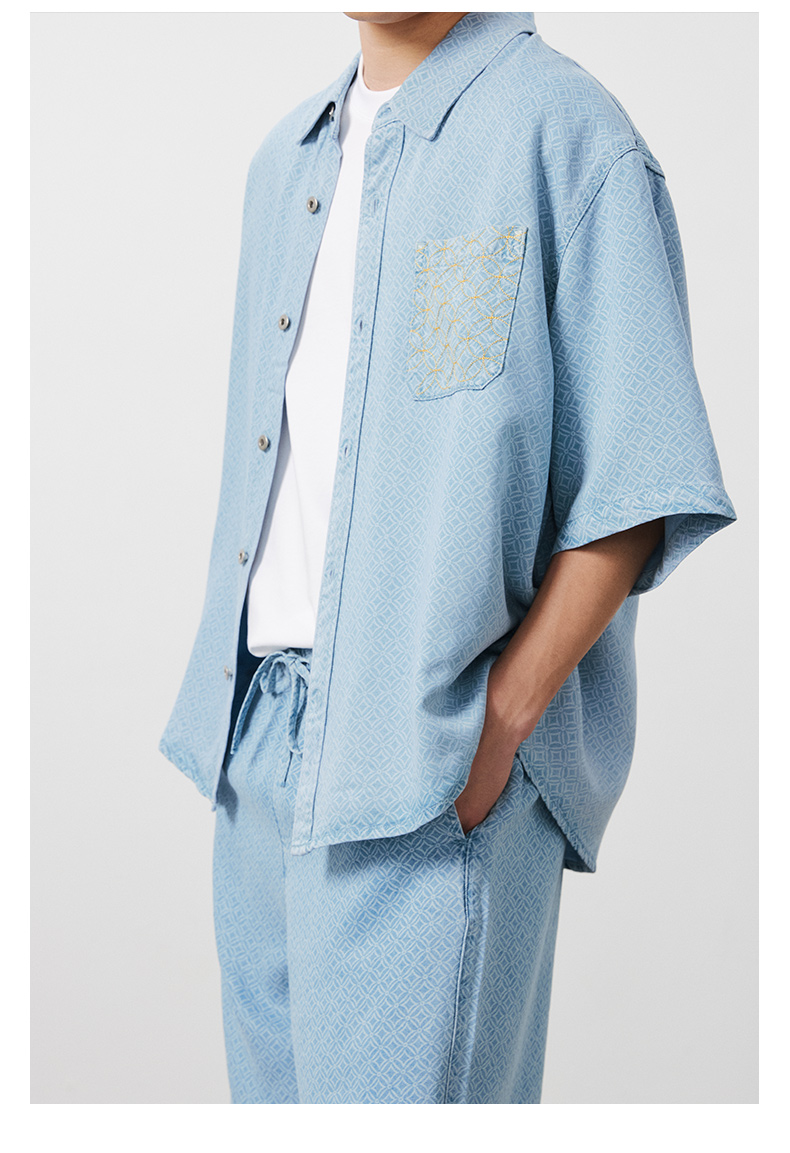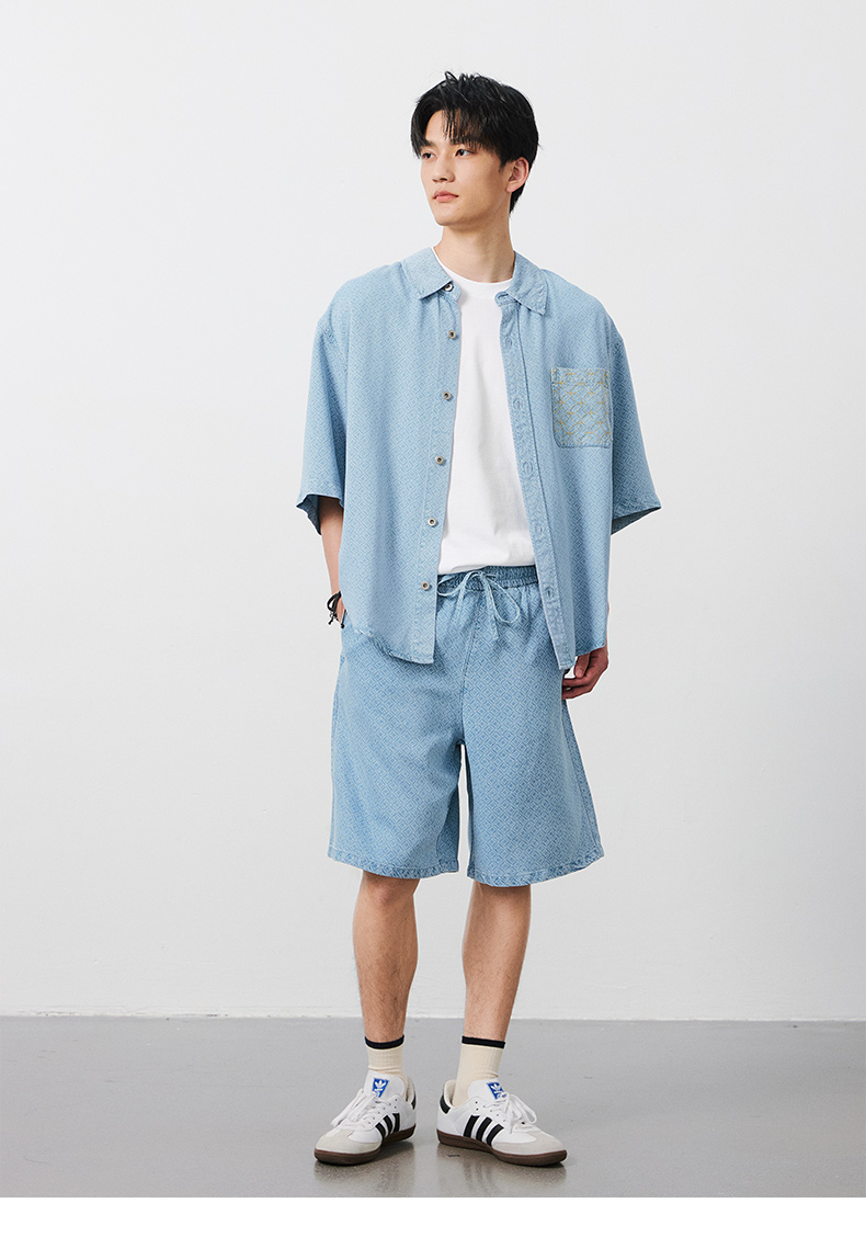 NPC潮牌100%【莱赛尔】铜钱印花短袖衬衫短裤男透气老钱风NP53SH02