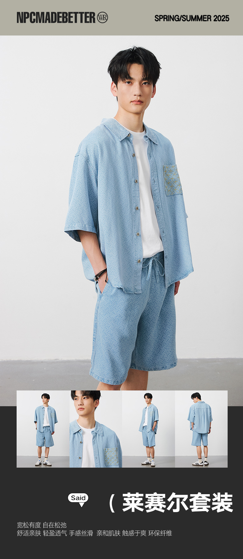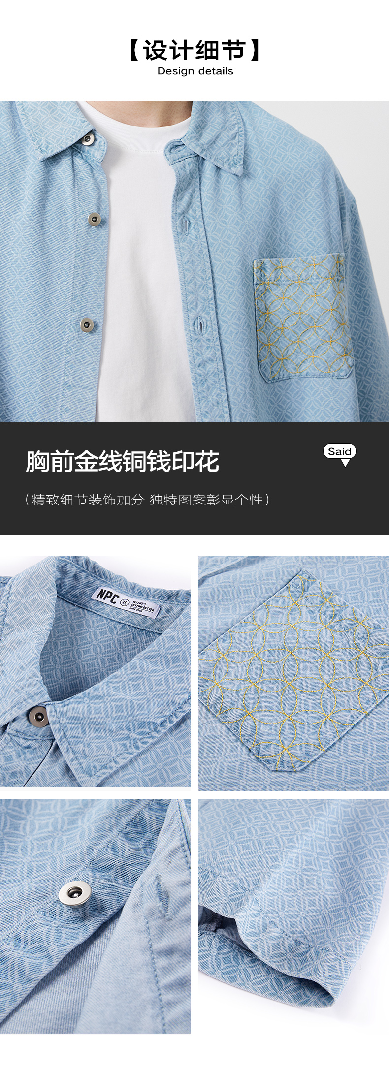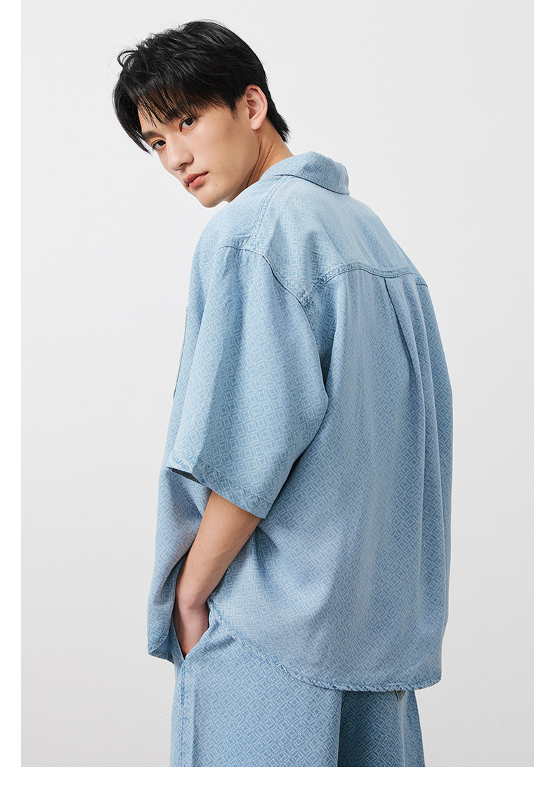 NPC潮牌100%【莱赛尔】铜钱印花短袖衬衫短裤男透气老钱风NP53SH02