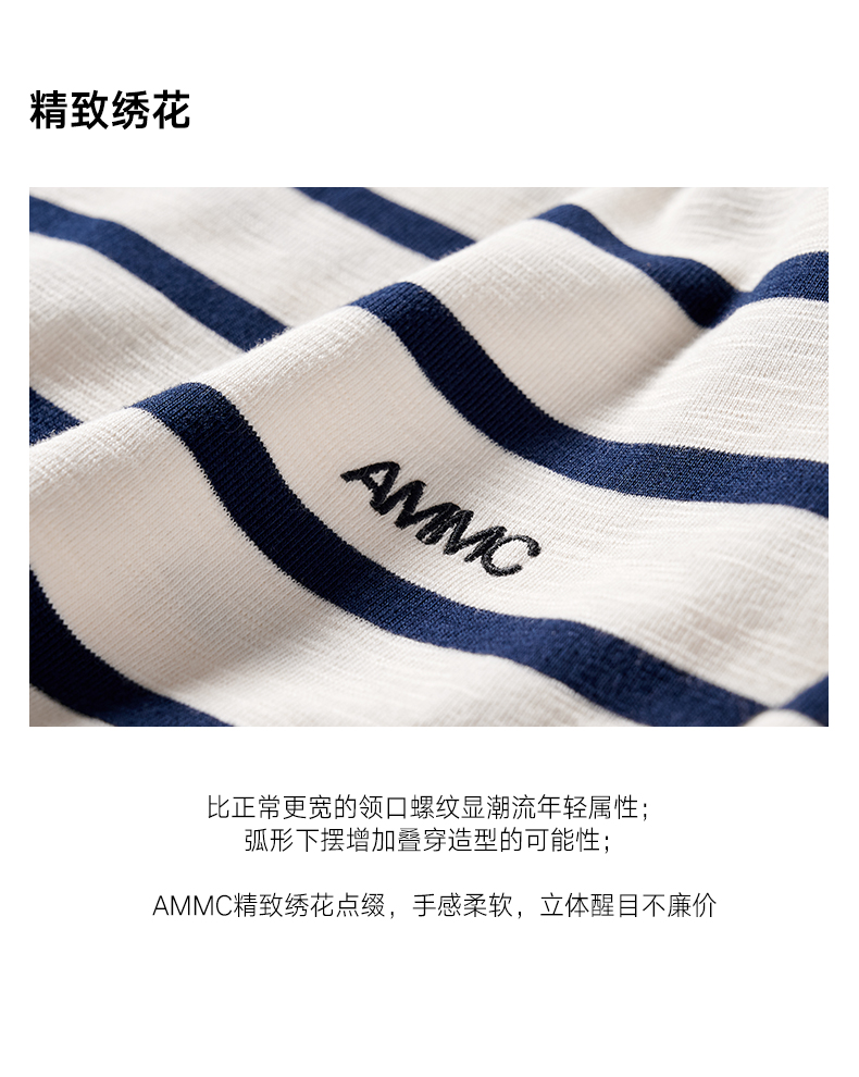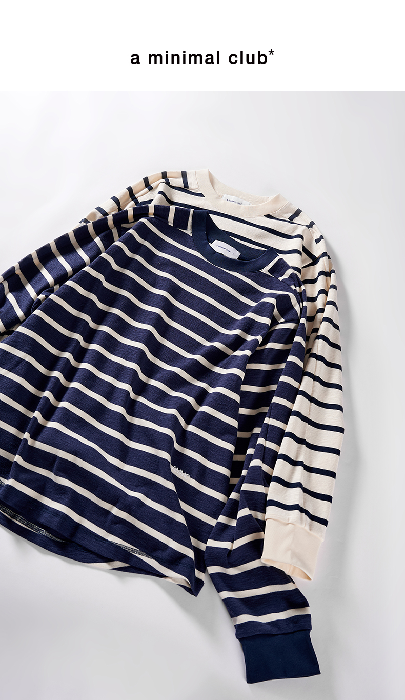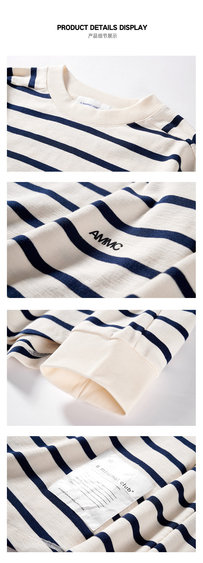 a minimal club简约正反不对称剪裁条纹长袖T恤竹节棉AM58TL01
