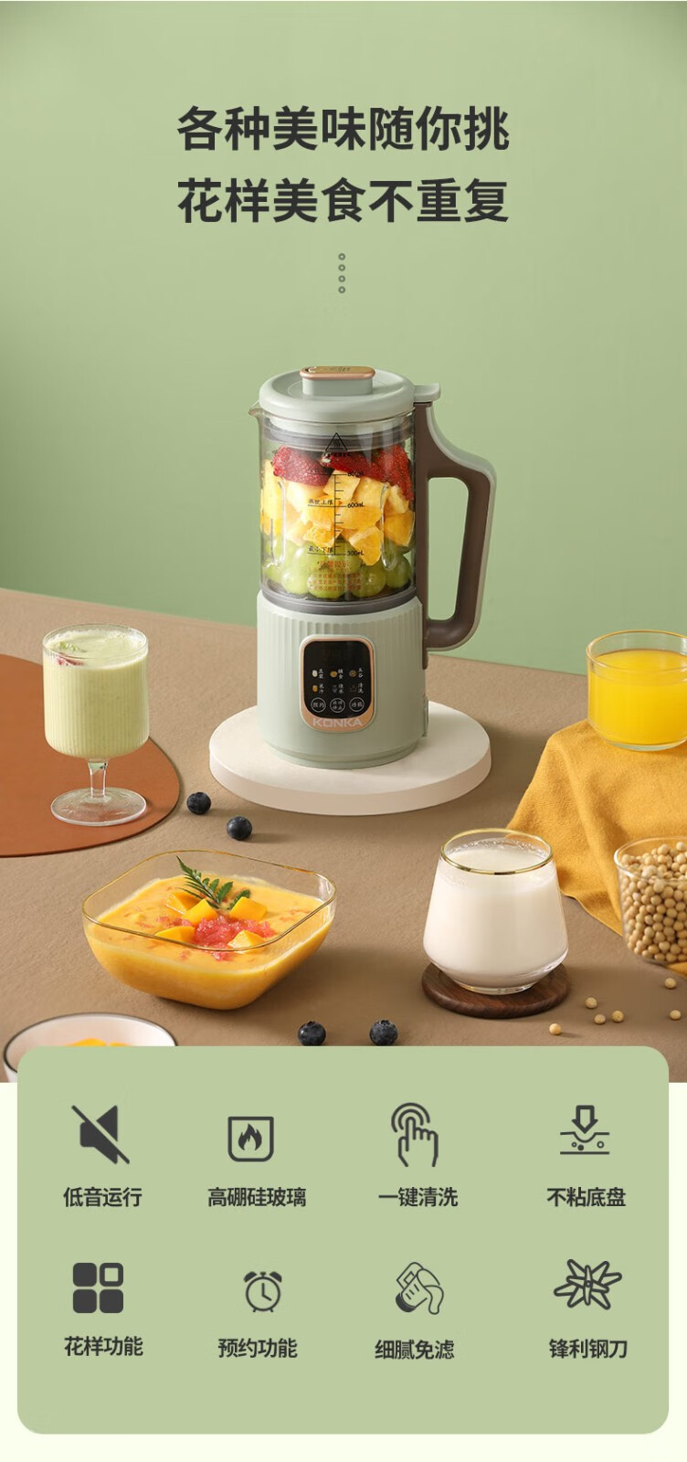 康佳(KONKA)家用破壁豆浆机多功榨汁能辅食料理机 KPBJ-8062-M