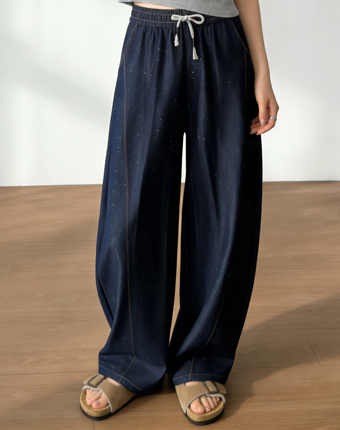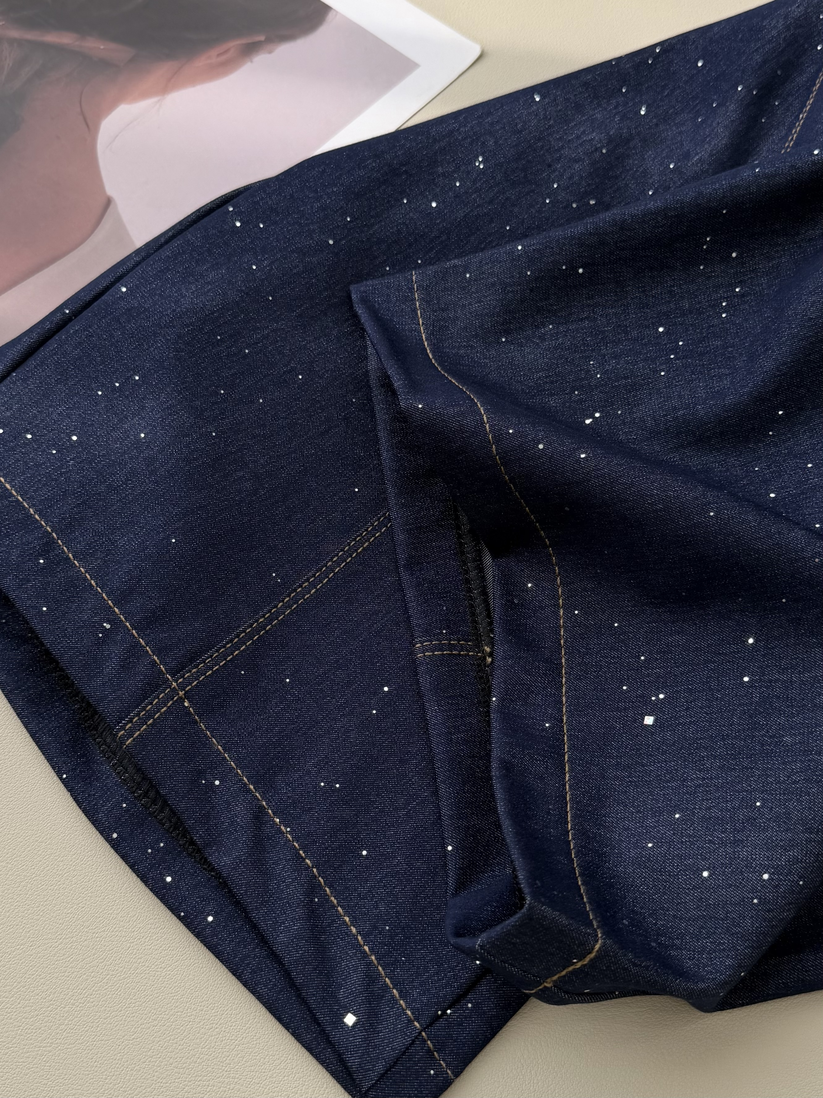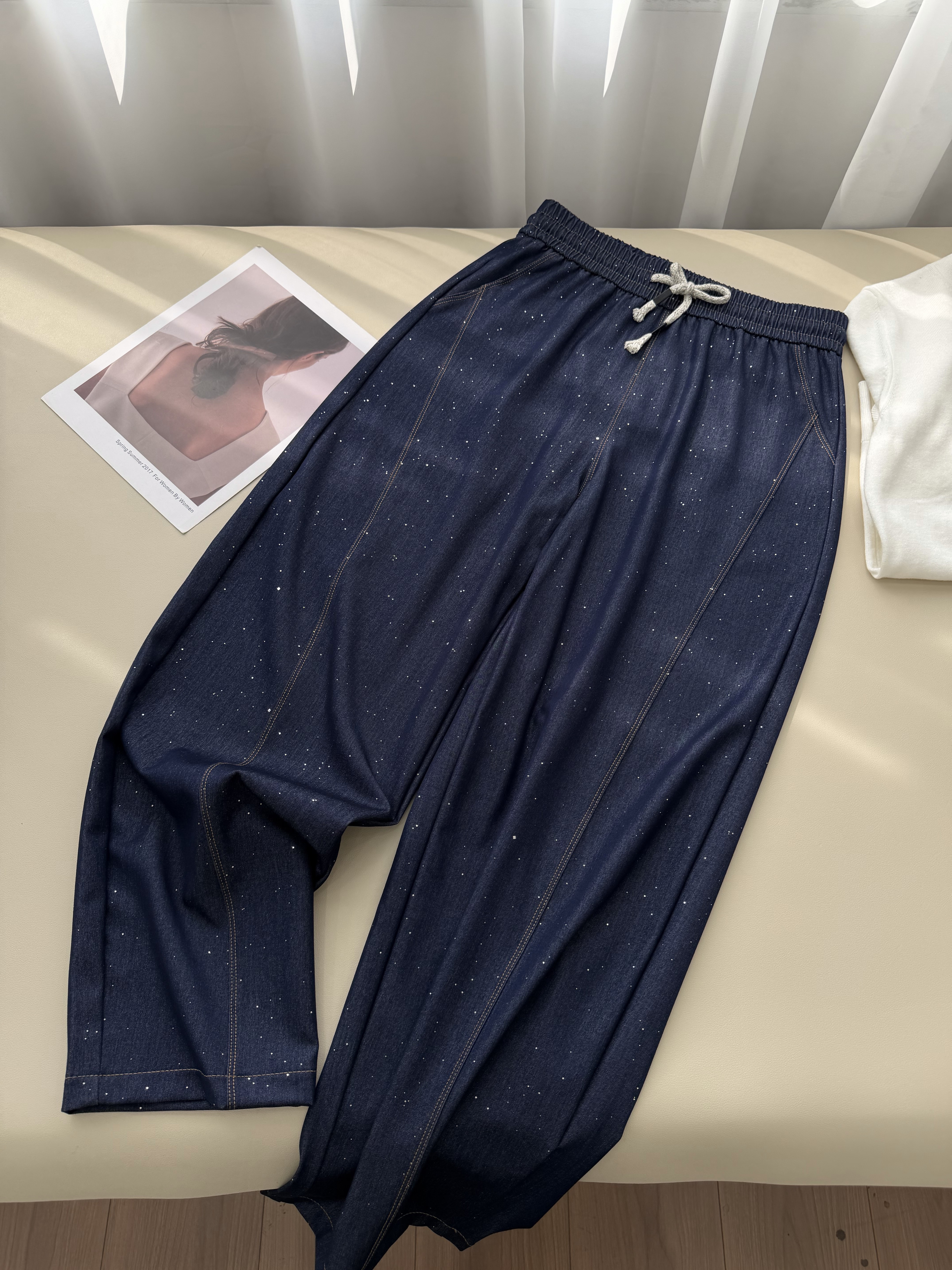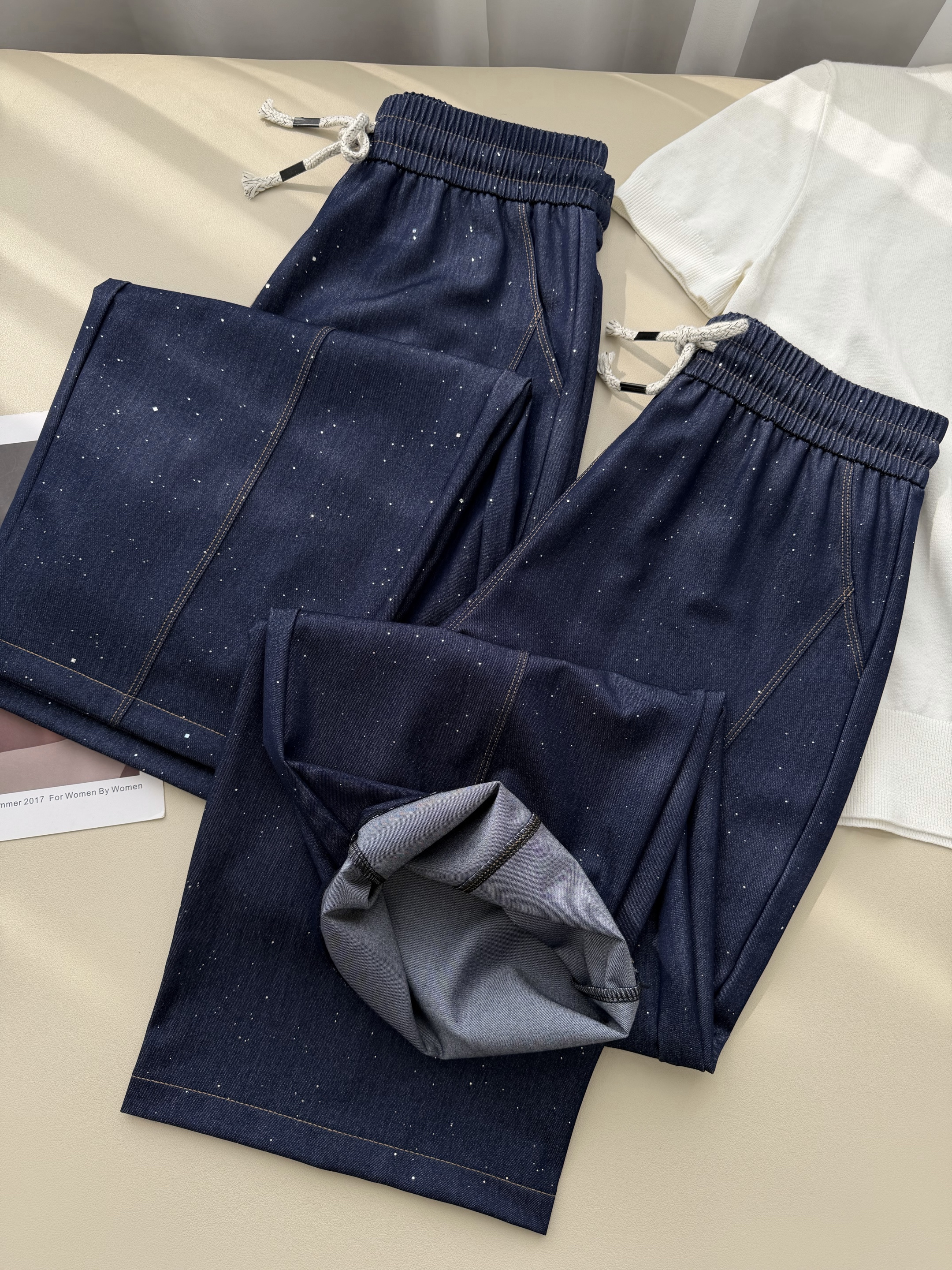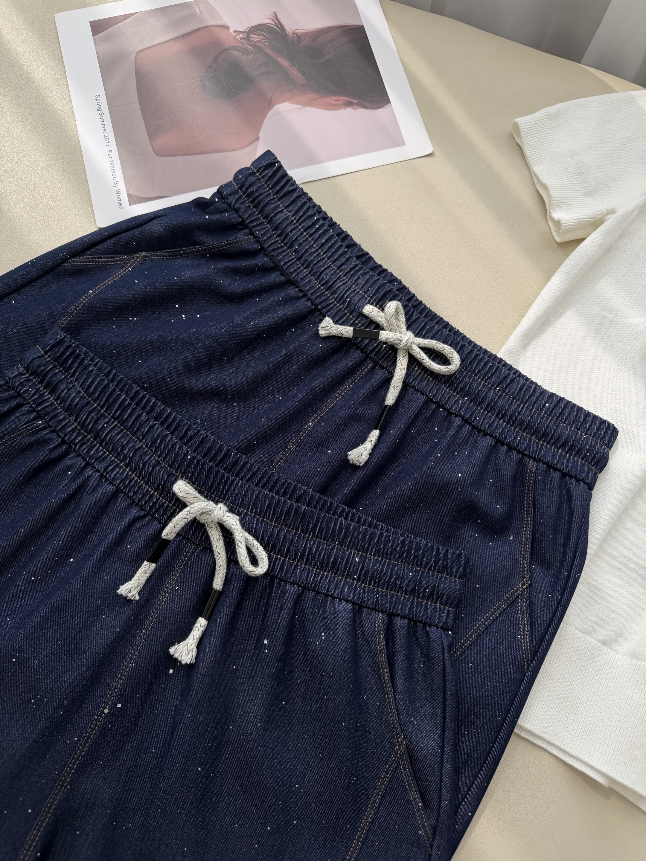 高端天丝牛仔混纺面料,冰滑软糯,贴腿瞬间就有凉感,软而不塌,垂而不皱!
