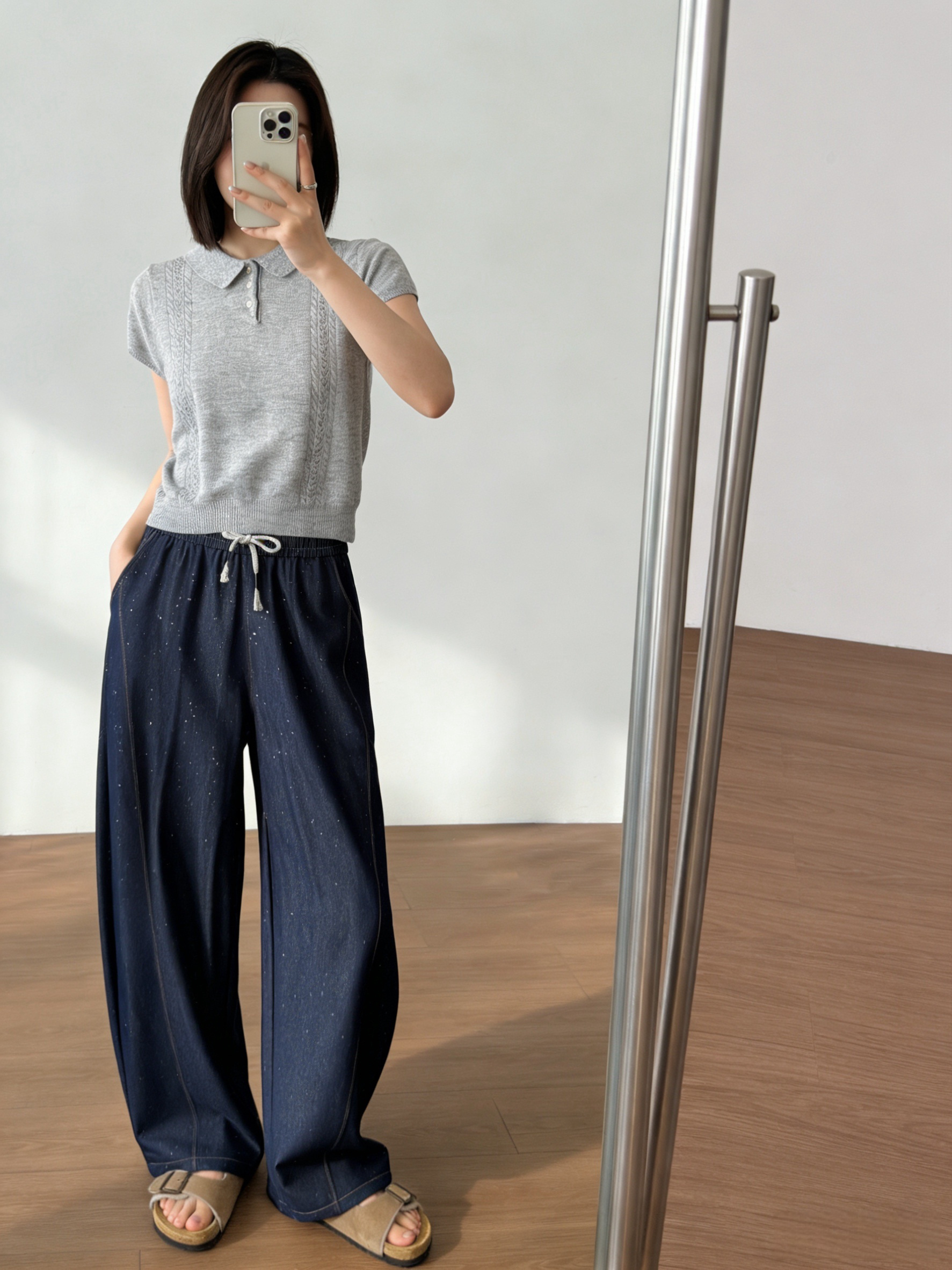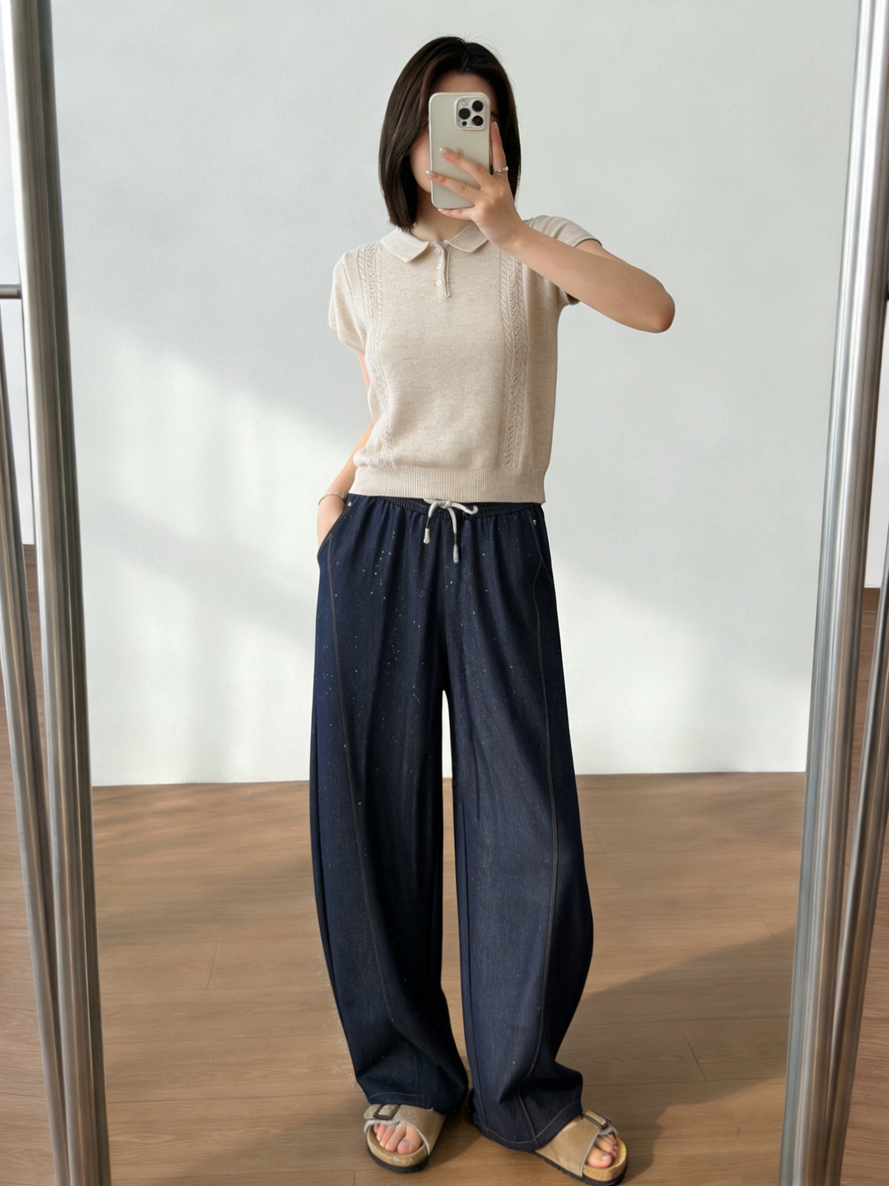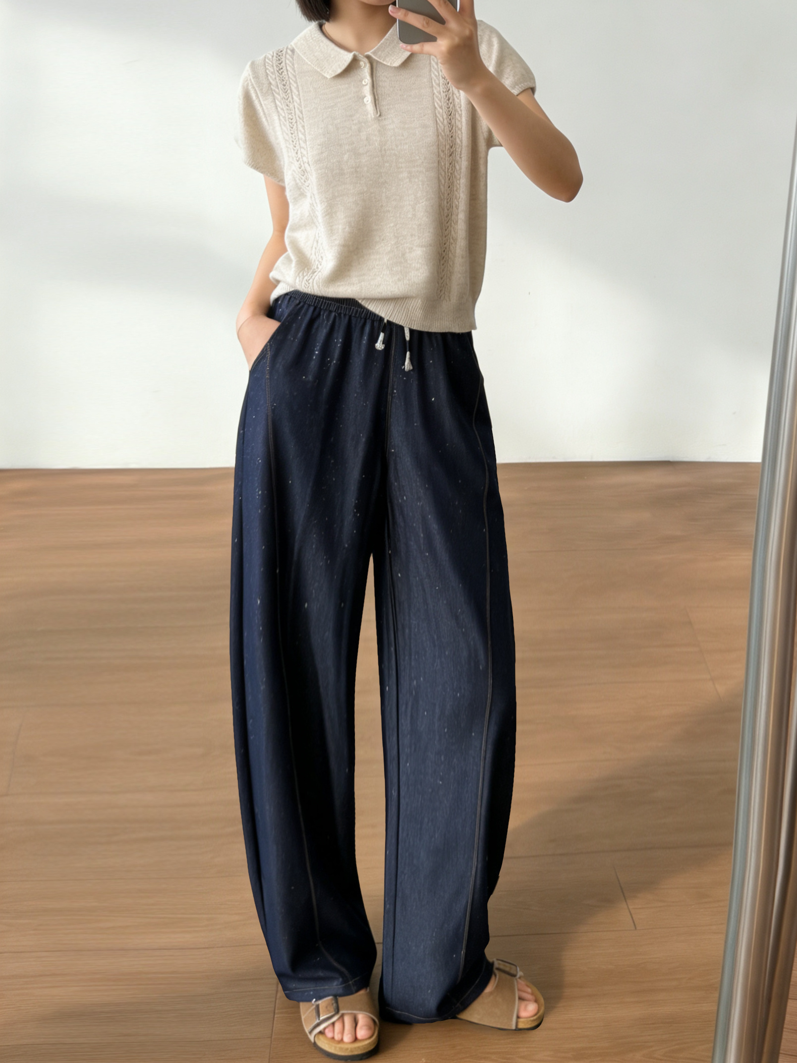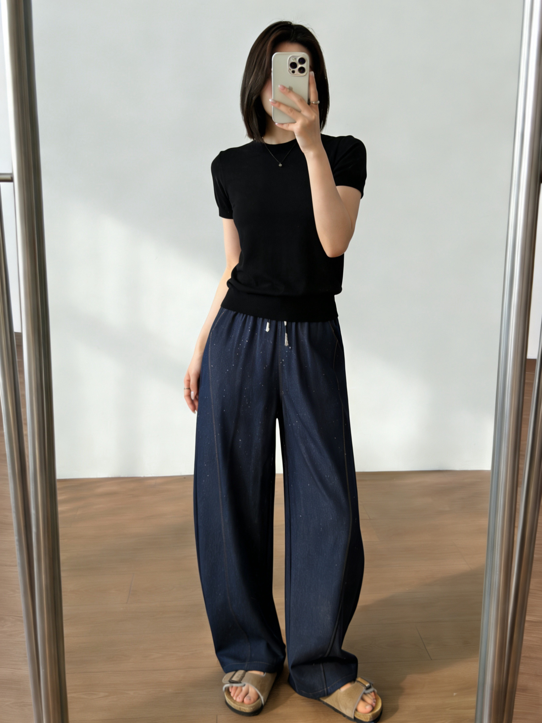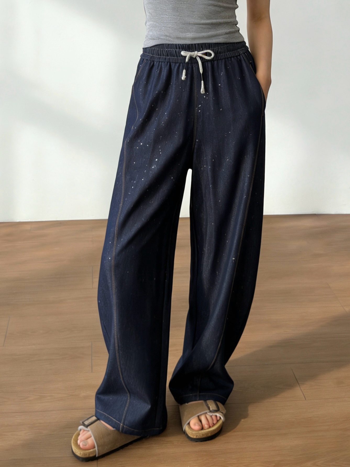 高端天丝牛仔混纺面料,冰滑软糯,贴腿瞬间就有凉感,软而不塌,垂而不皱!