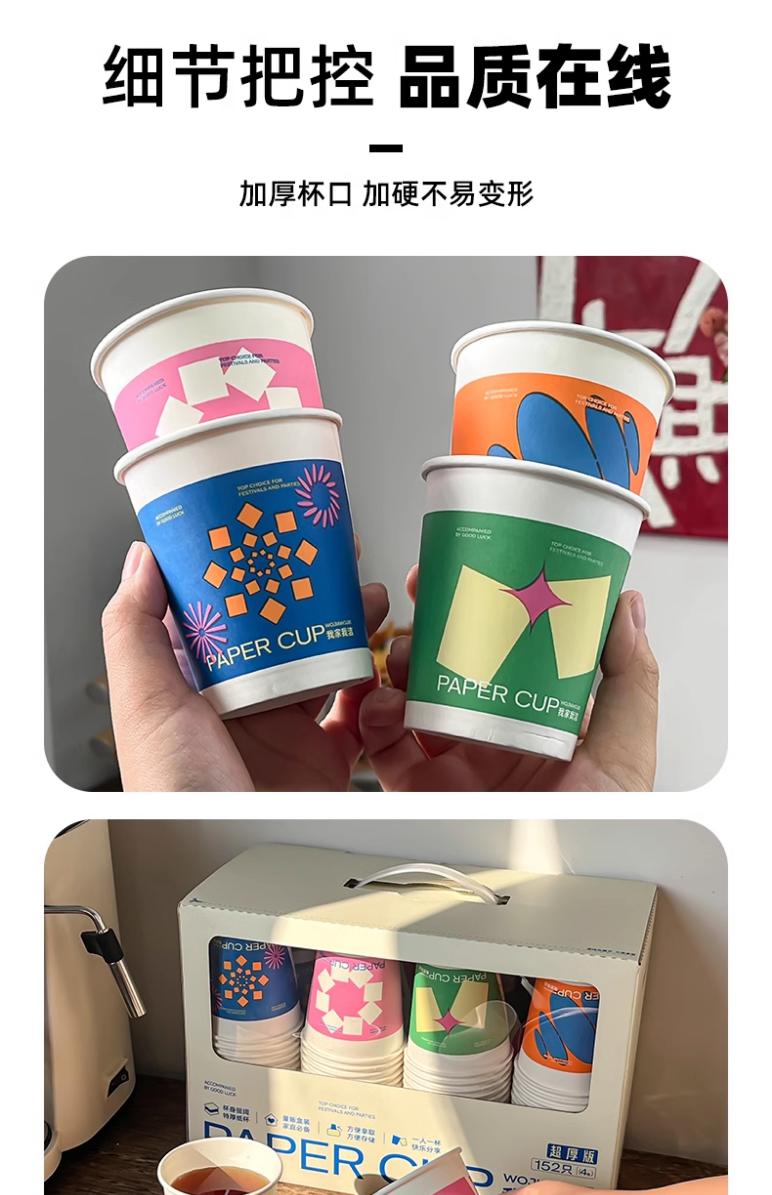 【品名】我家我洁 几何艺术一次性加厚纸杯 加厚加硬 不易软化 精美包装 【规格】152只/箱 【产地】国内 【发货包装】独立包装 【发货地】浙江 【发货快递】圆通 【不发货区域】新疆、西藏、港澳台 【发货时效】48-72小时,周末节假日顺延 |