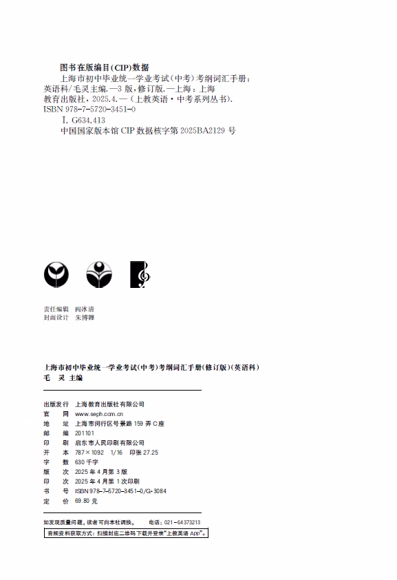 上海市2025年考纲词汇手册英语科上海市初中毕业统一学业考试 中考英语词汇专项练习紧扣考纲单词详解精析精练教育出版社2024
