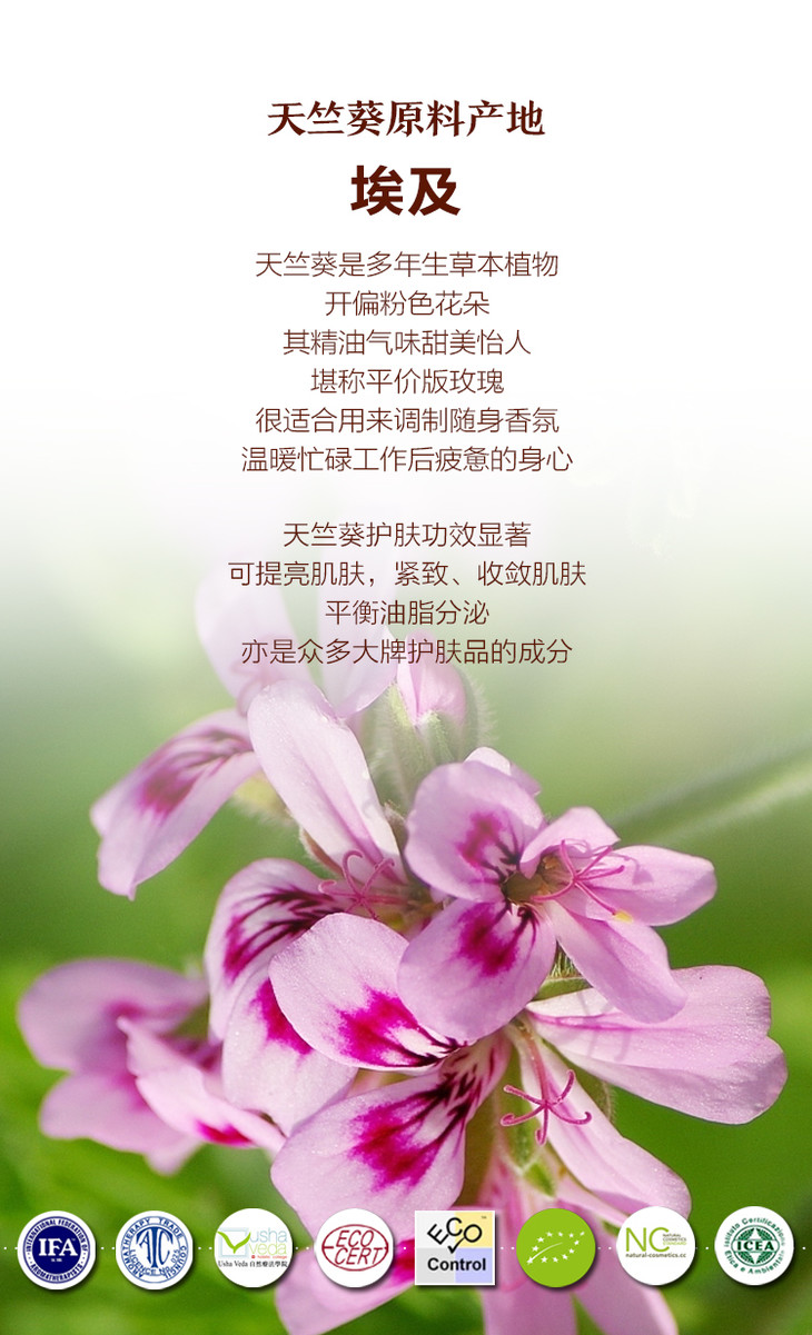 德国O家玫瑰天竺葵单方精油 香薰 稀释做面部精华 身体按摩油