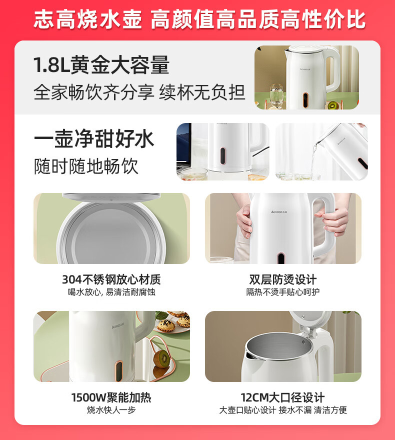 304不锈钢双层防烫大容量家用烧水壶保温一体