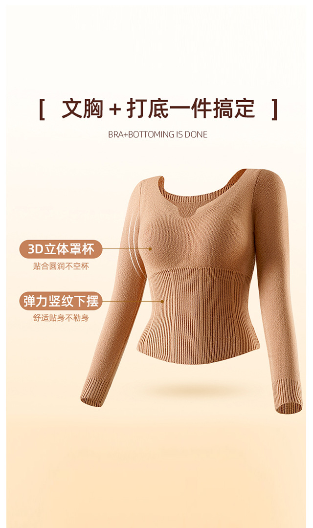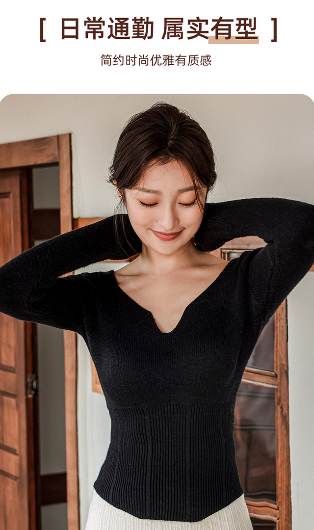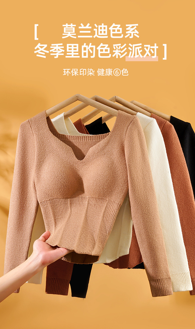 【秋冬必备,保暖养肤针织衫!】不臃肿可外穿,G级质感。胸垫设计,凸显迷人曲线。时尚打底上衣,迎接时尚秋冬。