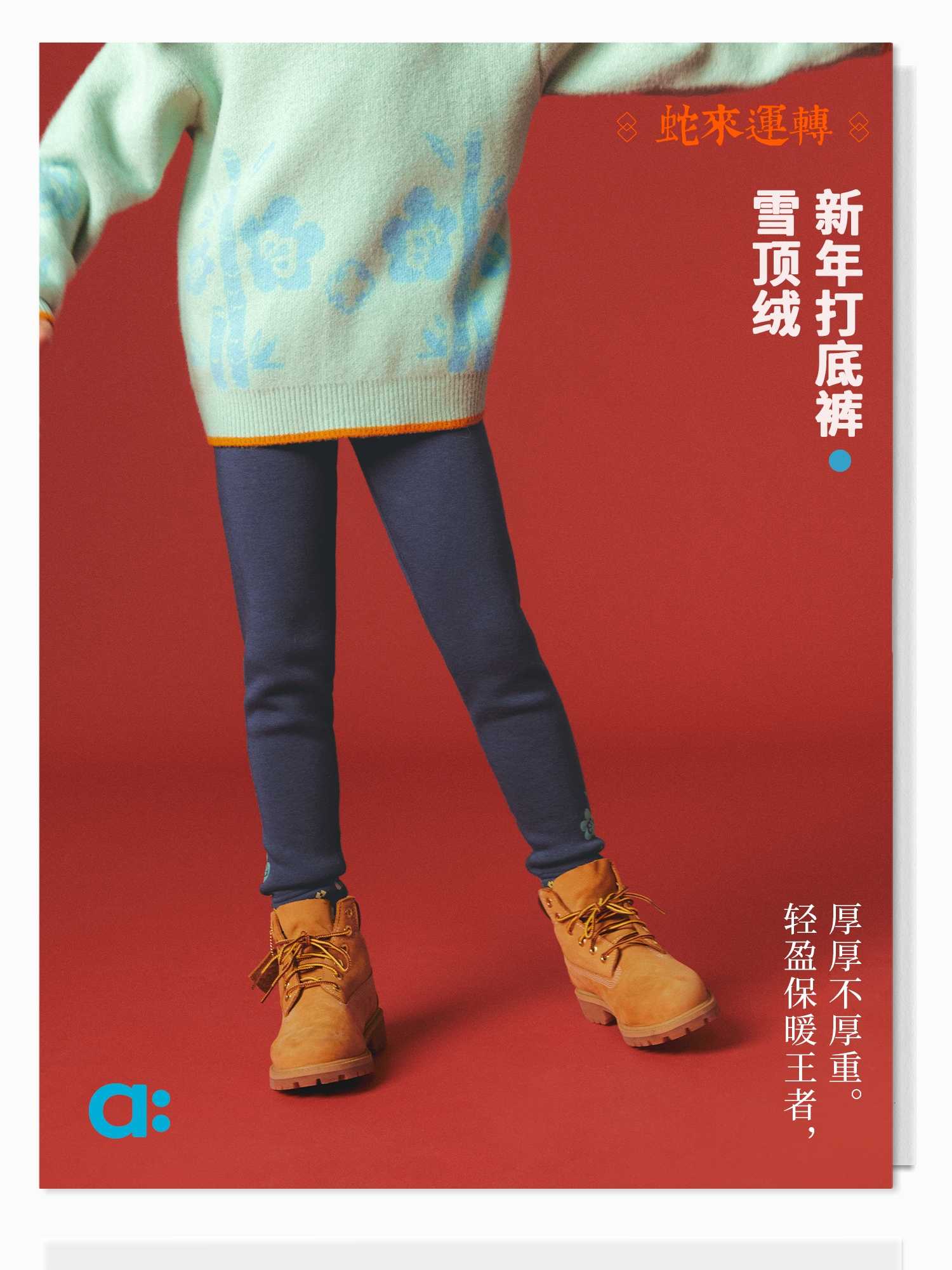 【雪顶绒】allblu幼岚儿童打底裤女童新款秋冬季加绒保暖亲肤裤子