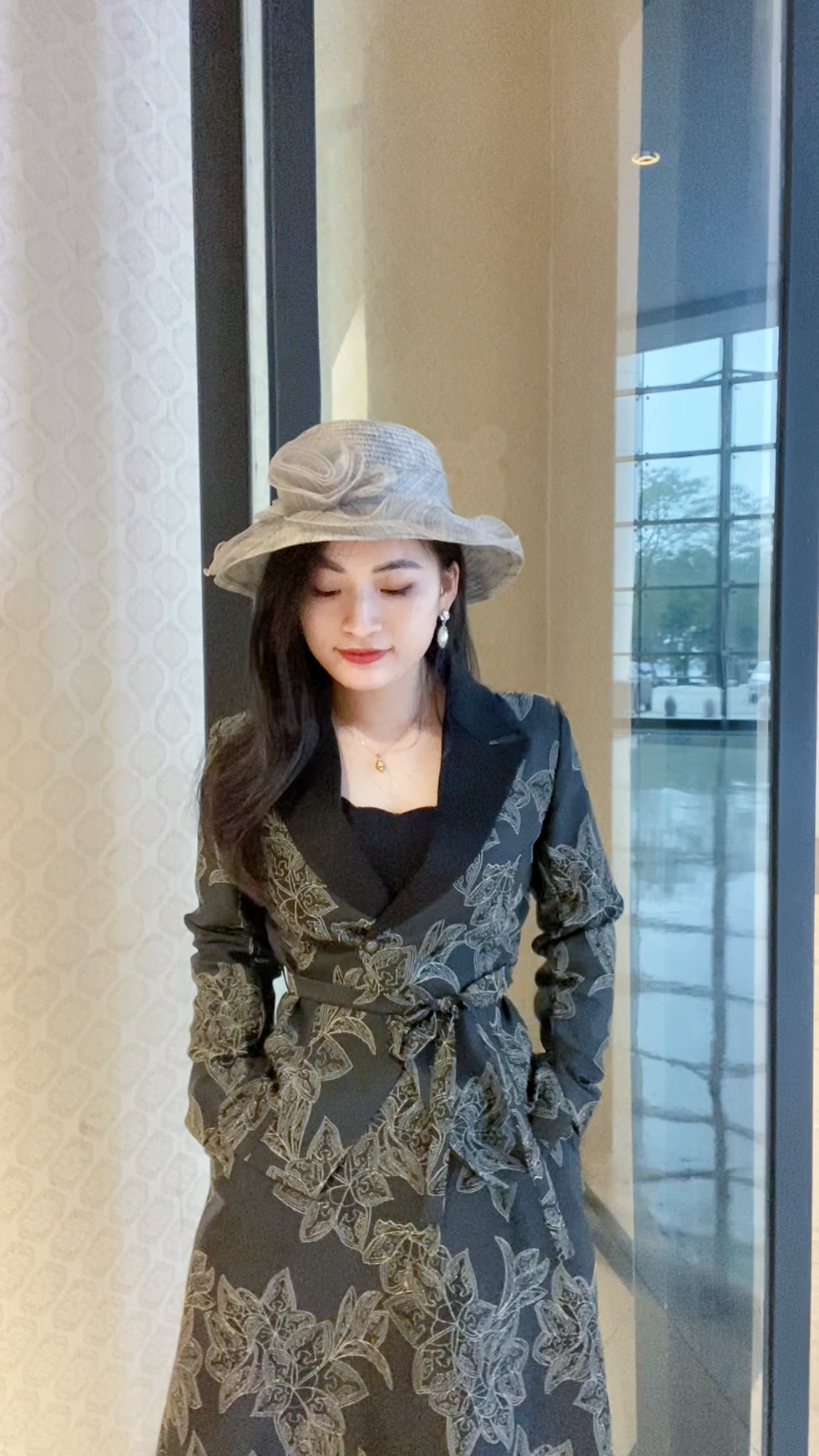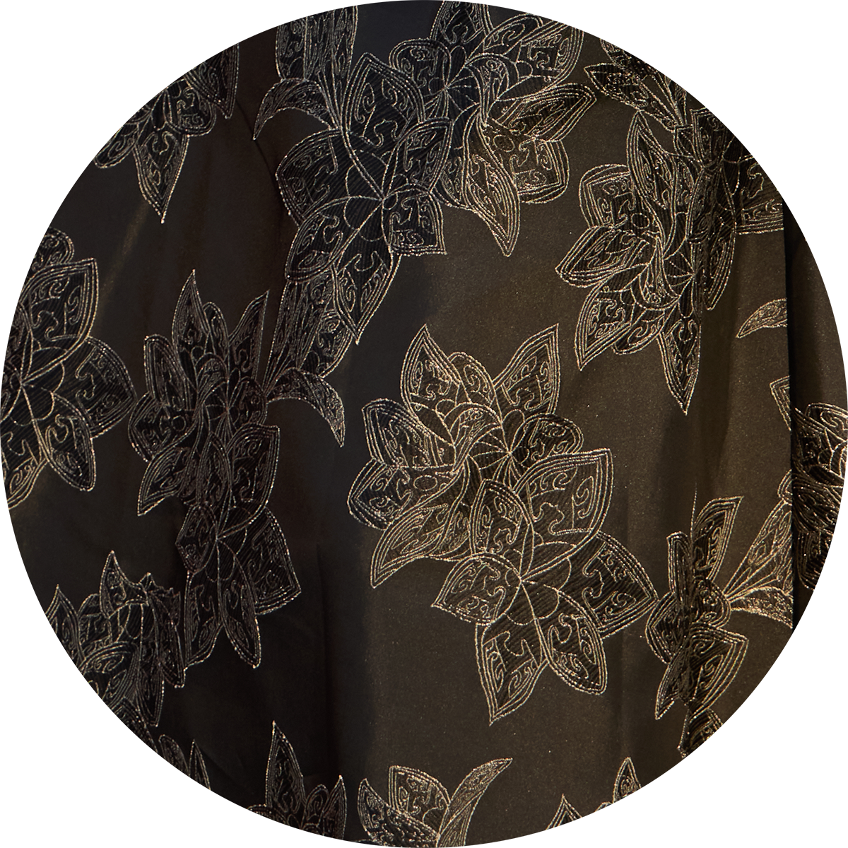 重工提花面料上, 饕餮纹的细致工艺被重新解构,与莲花瓣的造型巧妙融合形成独具现代审美的纹样,仿佛将千年青铜器的神秘与华贵,化作现代女性衣橱中的一件艺术品。