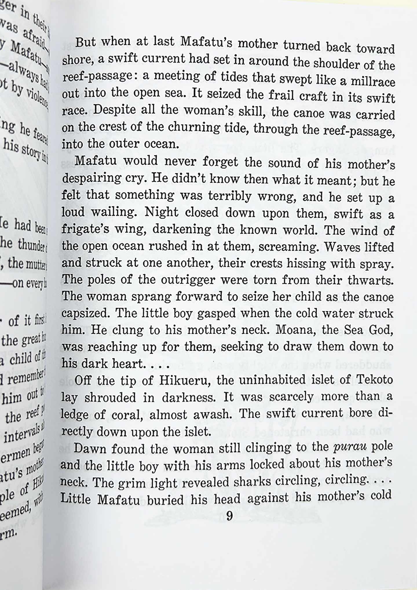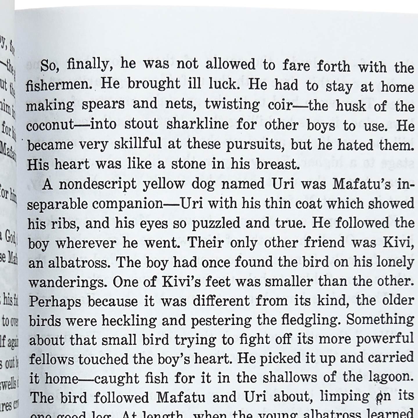 Mafatu, a young Polynesian boy whose name means Stout Heart, has a terrible fear of the sea. In this classic tale -- winner of the 1940 Newbery Medal and a strong favorite ever since -- he proves his courage to himself and his people. Simply and beautifully told, with striking original artwork by the author. 50th Anniversary Edition.