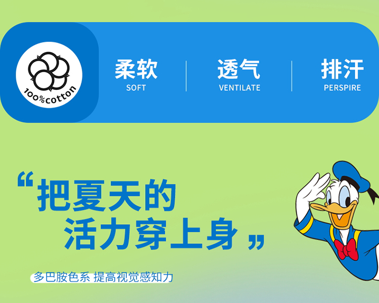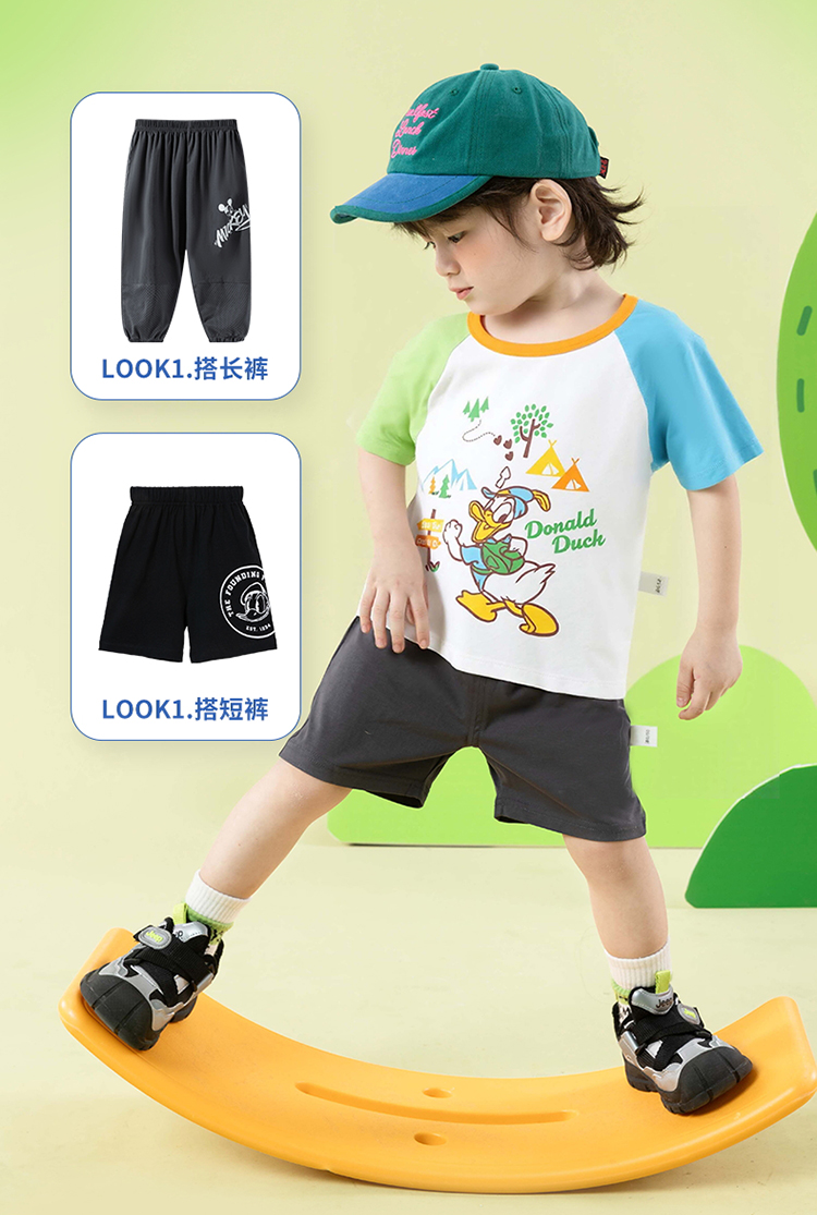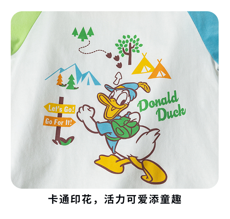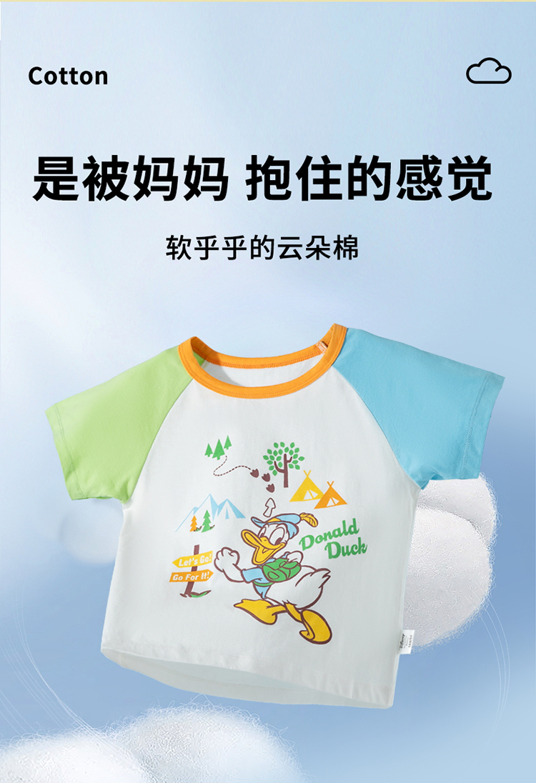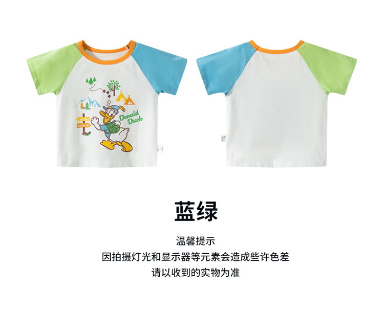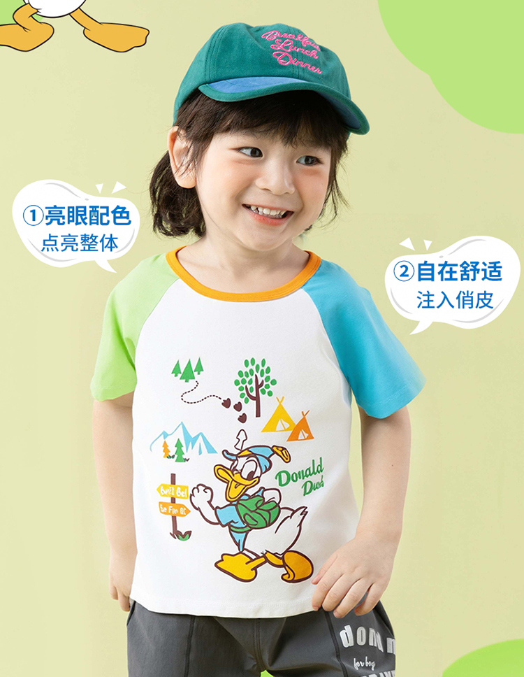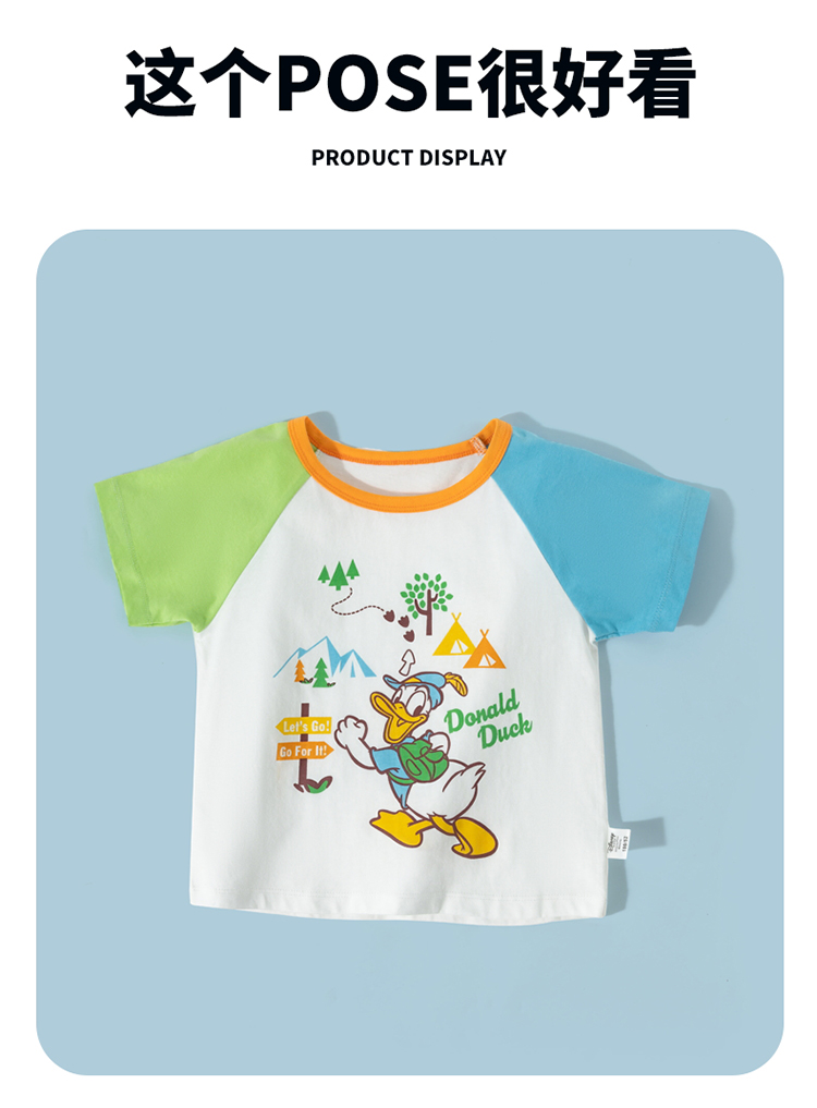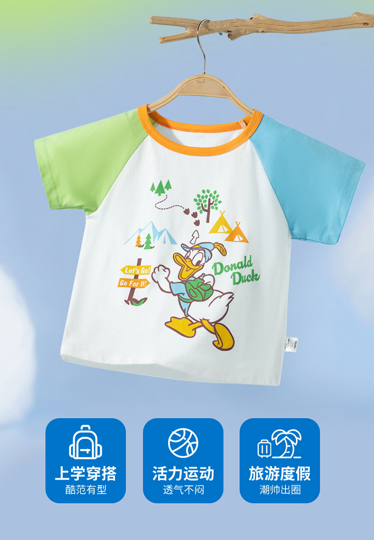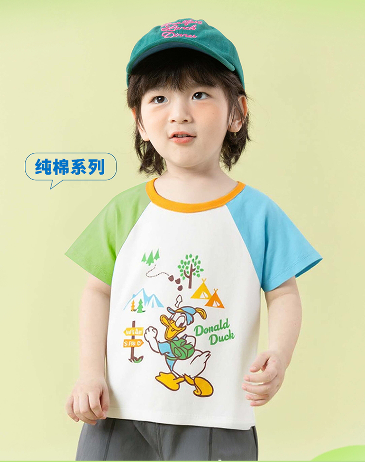 迪士尼【唐老鸭撞色短袖T恤】25夏季新款男童纯棉上衣宽松透气打底衫*