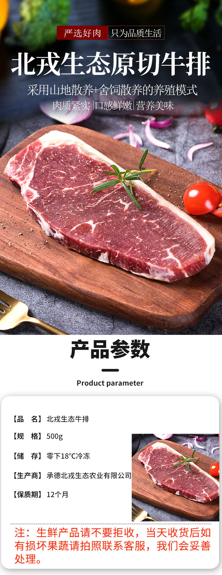 生态牛原切牛排500g眼肉上脑外脊牛排 山地散养谷饲牛冷冻生鲜 全国发货满额包邮