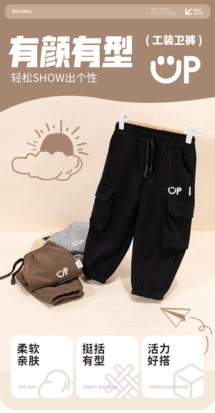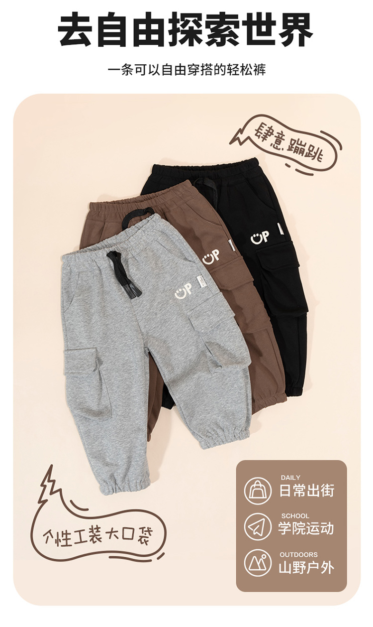 贝贝怡24新款秋装休闲时尚街头潮搭束脚男童裤子ZB3DK034