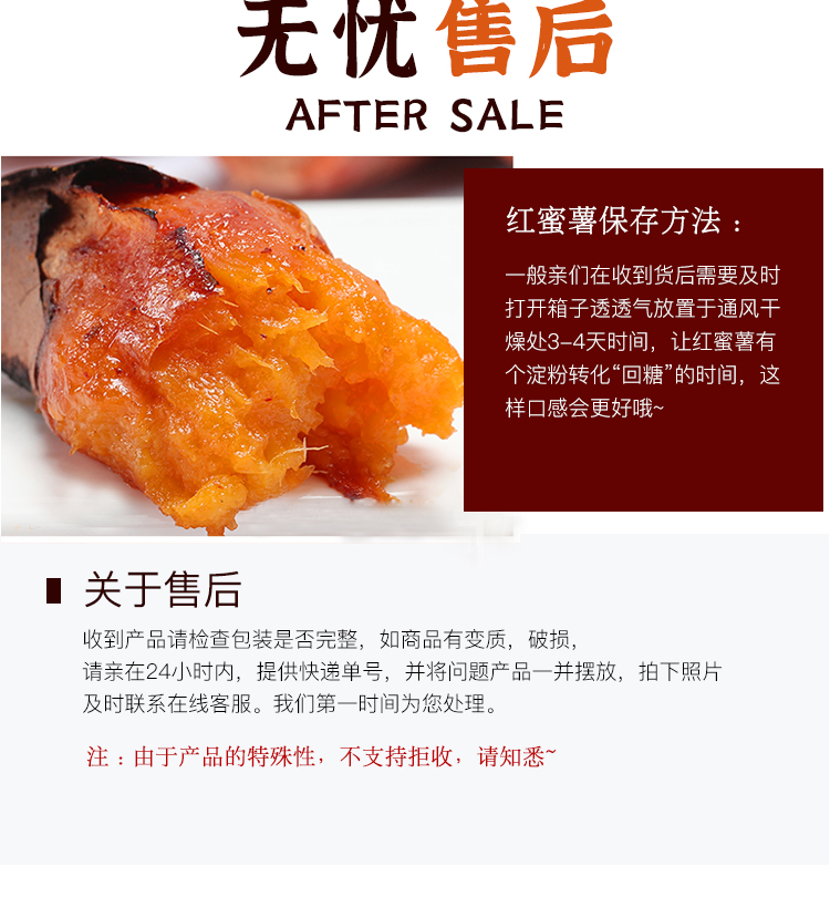 品名:烟薯25号规格1:净重4.5斤小果(单果1-3两,25个果左右) 规格2:3斤彩箱中大果(单果3-8两,4-9个果) 规格3:4.5斤彩箱中大果(单果3-8两,7-14个果) 包装:彩箱+无纺布/网套 快递:中通EMS随机 发货时效:48小时 发货地/产地:山东 运费模板:北京上海+1内蒙甘肃宁夏青海+3新疆西藏海南不发货,其他包邮 售卖期:7月-次年2月 保质期:阴凉通风处10天左右 周六周天、节假日除外,早上十点之前的订单是48小时发货 ,到货时间约为2-5天,请您耐心 |