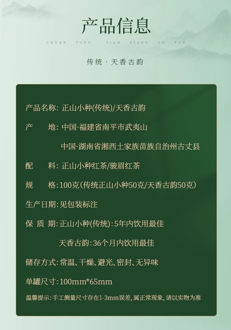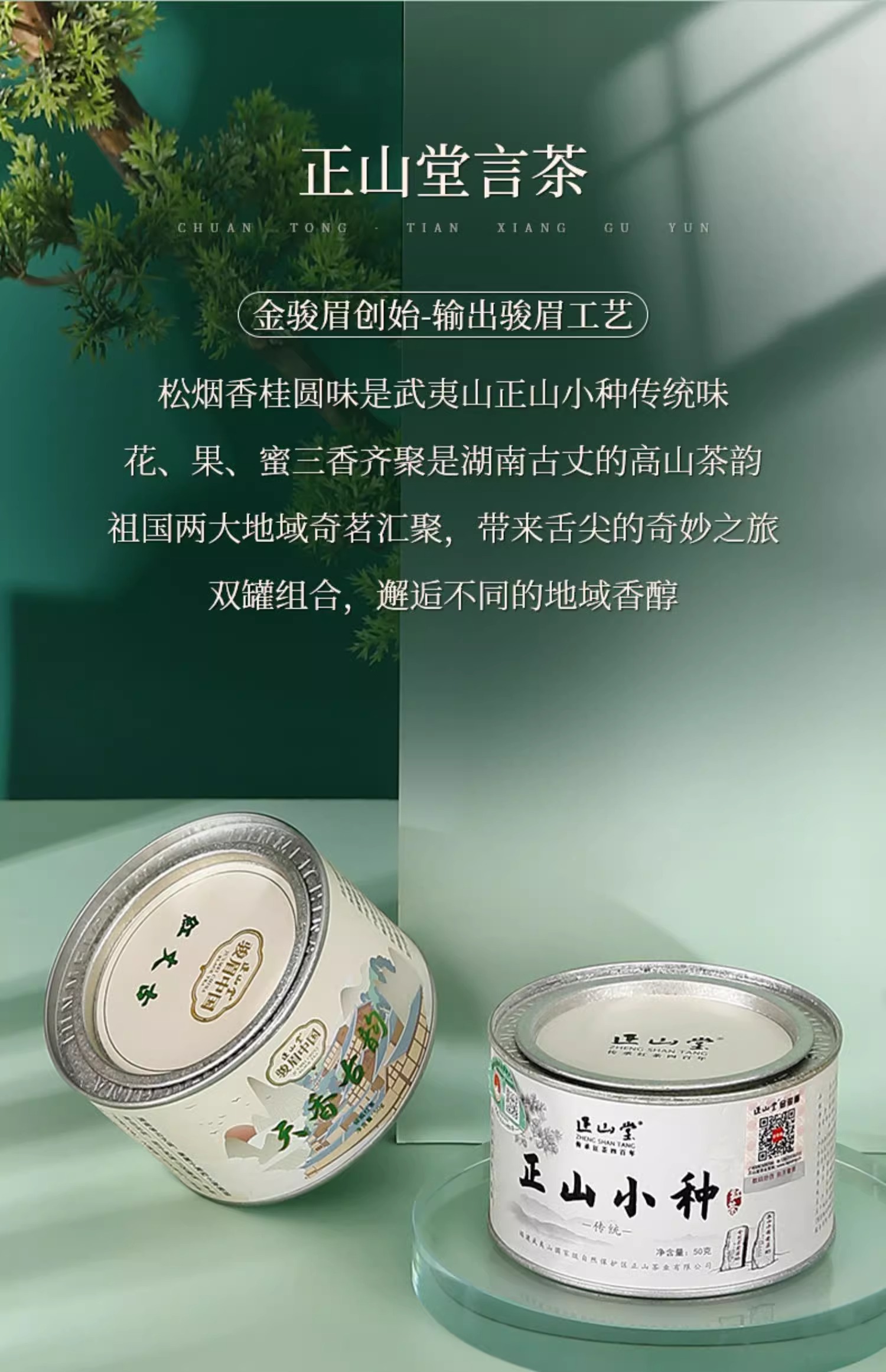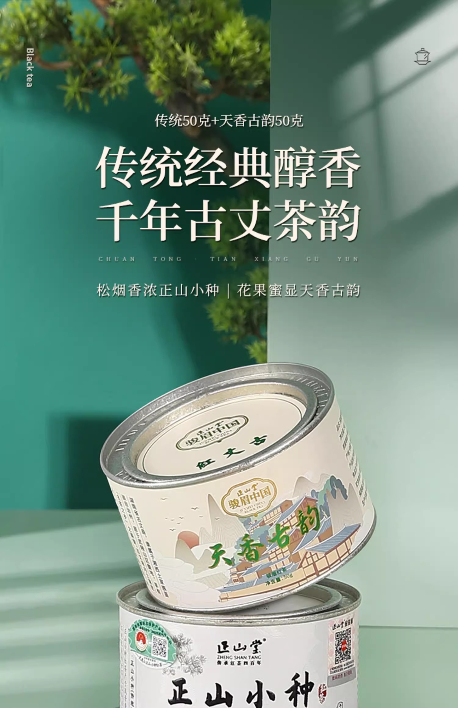 正山堂 传统正山小种红茶湖南古丈红天香古韵 特级红茶组合罐装100g