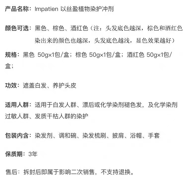 以色列Impatien纯植物染发粉 50克