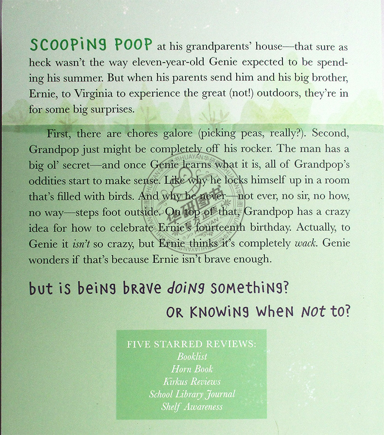 How does he match his clothes? Know where to walk? Cook with a gas stove? Pour a glass of sweet tea without spilling it? Genie thinks Grandpop must be the bravest guy he’s ever known, but he starts to notice that his grandfather never leaves the house—as in NEVER. And when he finds the secret room that Grandpop is always disappearing into—a room so full of songbirds and plants that it’s almost as if it’s been pulled inside-out—he begins to wonder if his grandfather is really so brave after all.