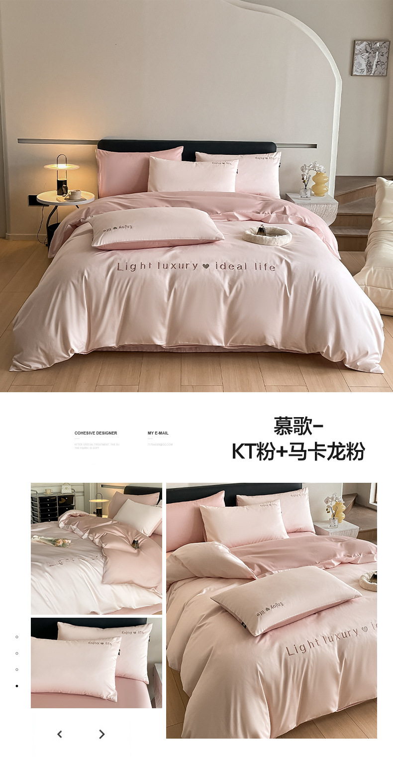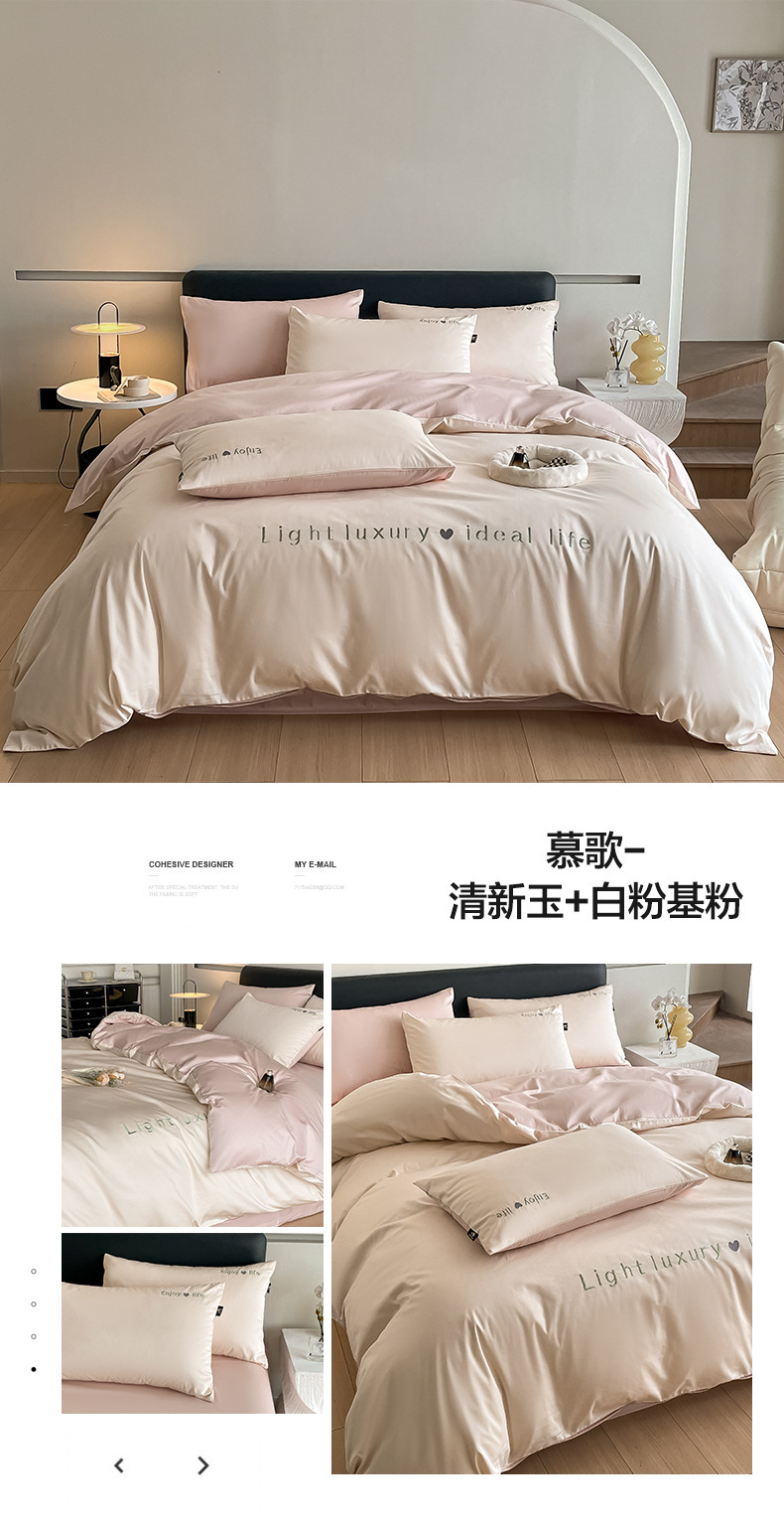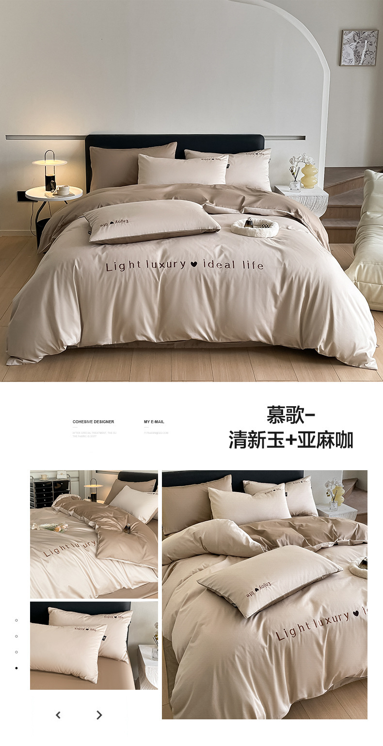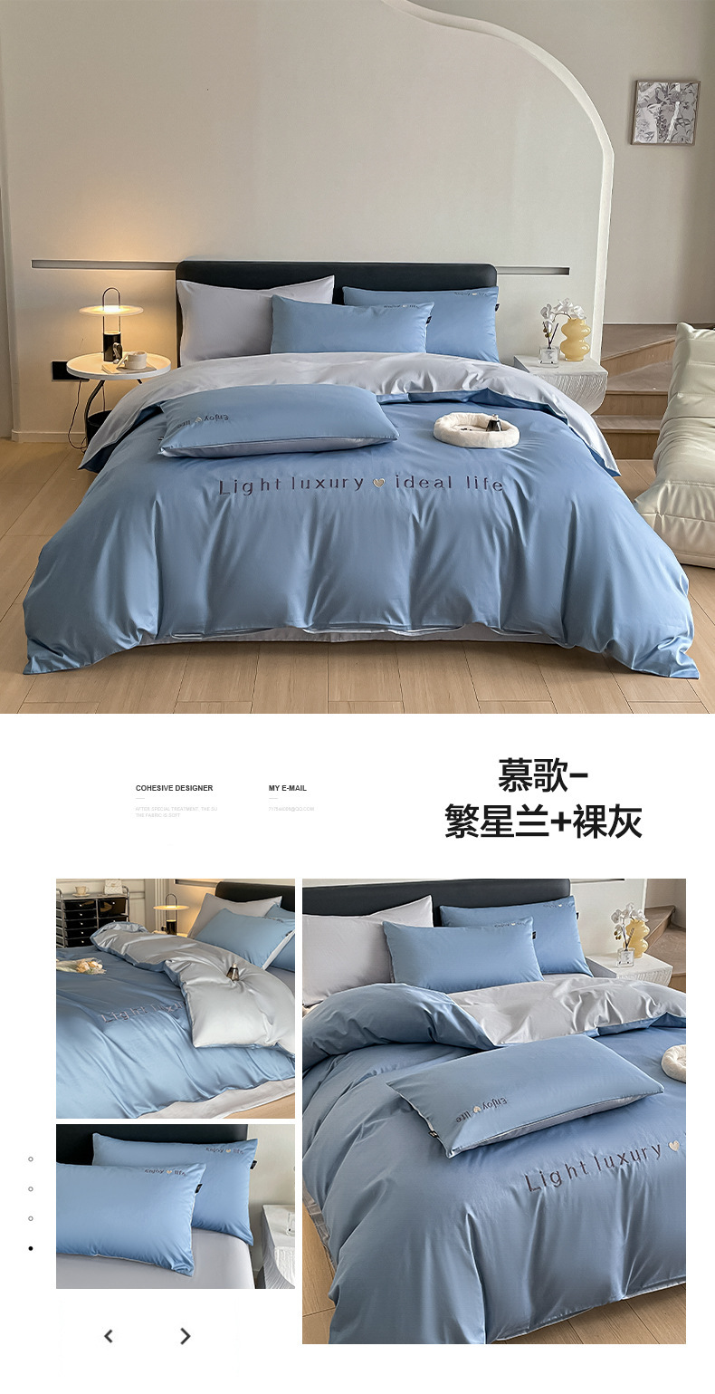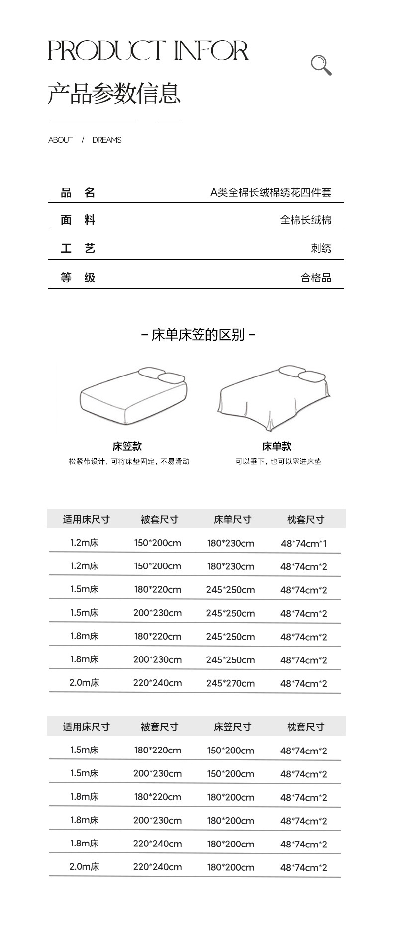 【高支高密】A类母婴级120支长绒棉贡缎四件套高级感纯棉刺绣款床单床笠