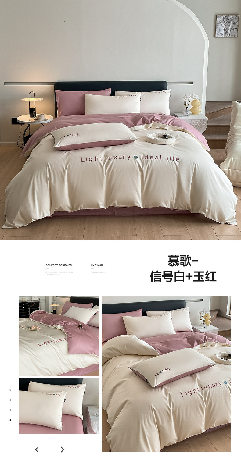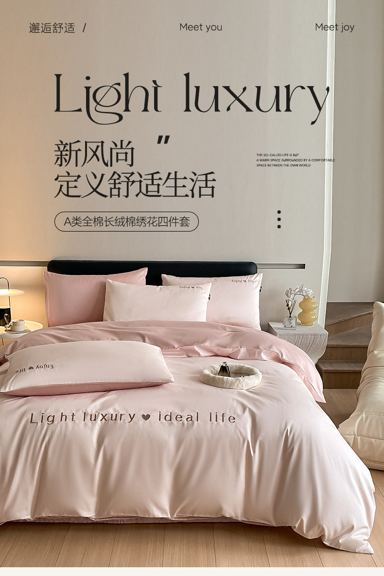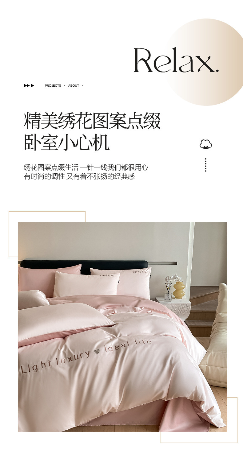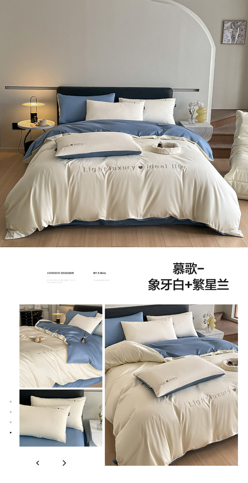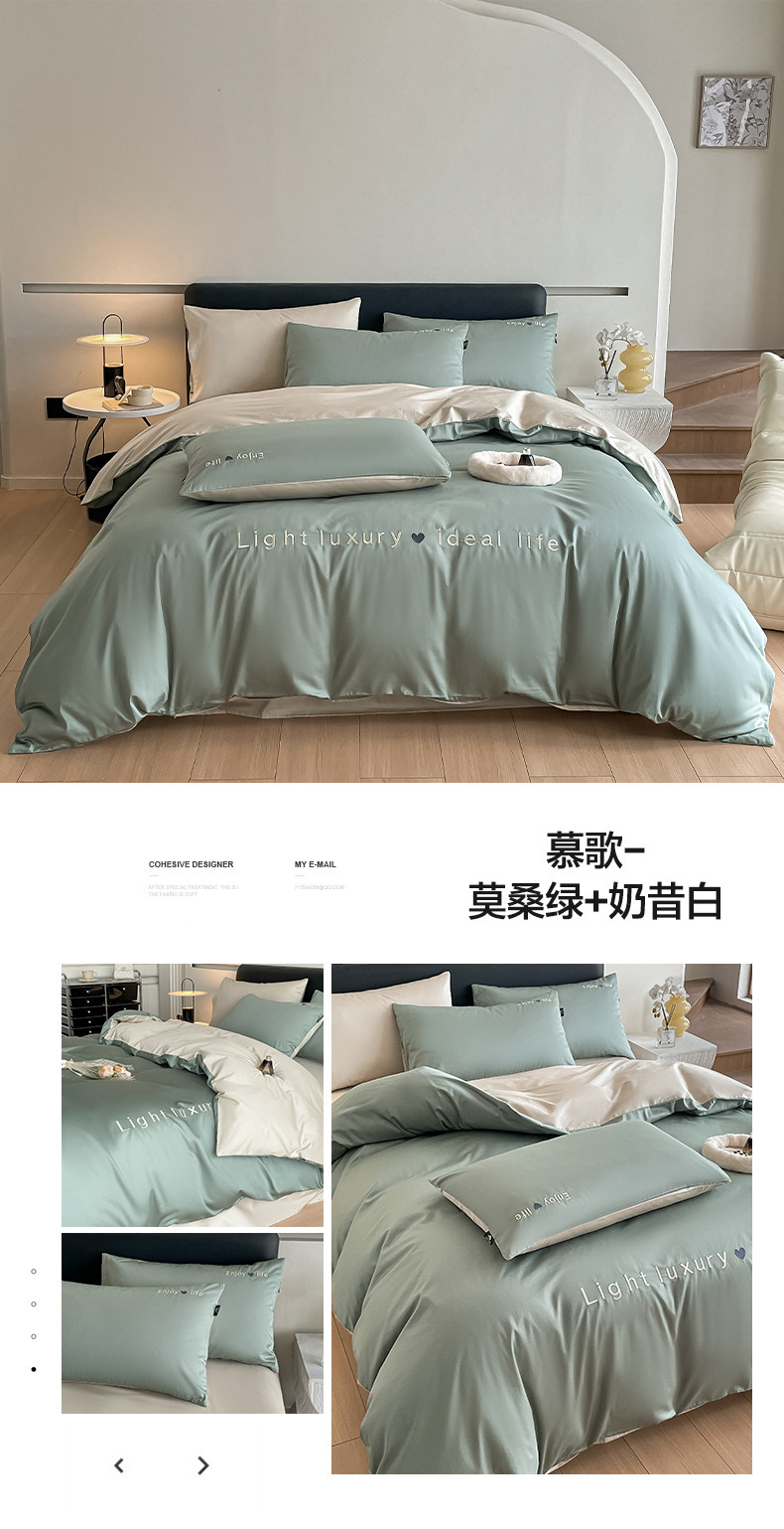 【高支高密】A类母婴级120支长绒棉贡缎四件套高级感纯棉刺绣款床单床笠