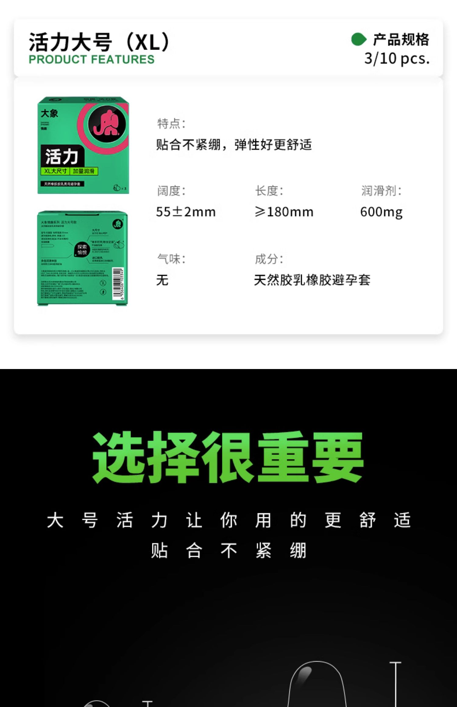 大象活力大号超薄避孕套 55mm