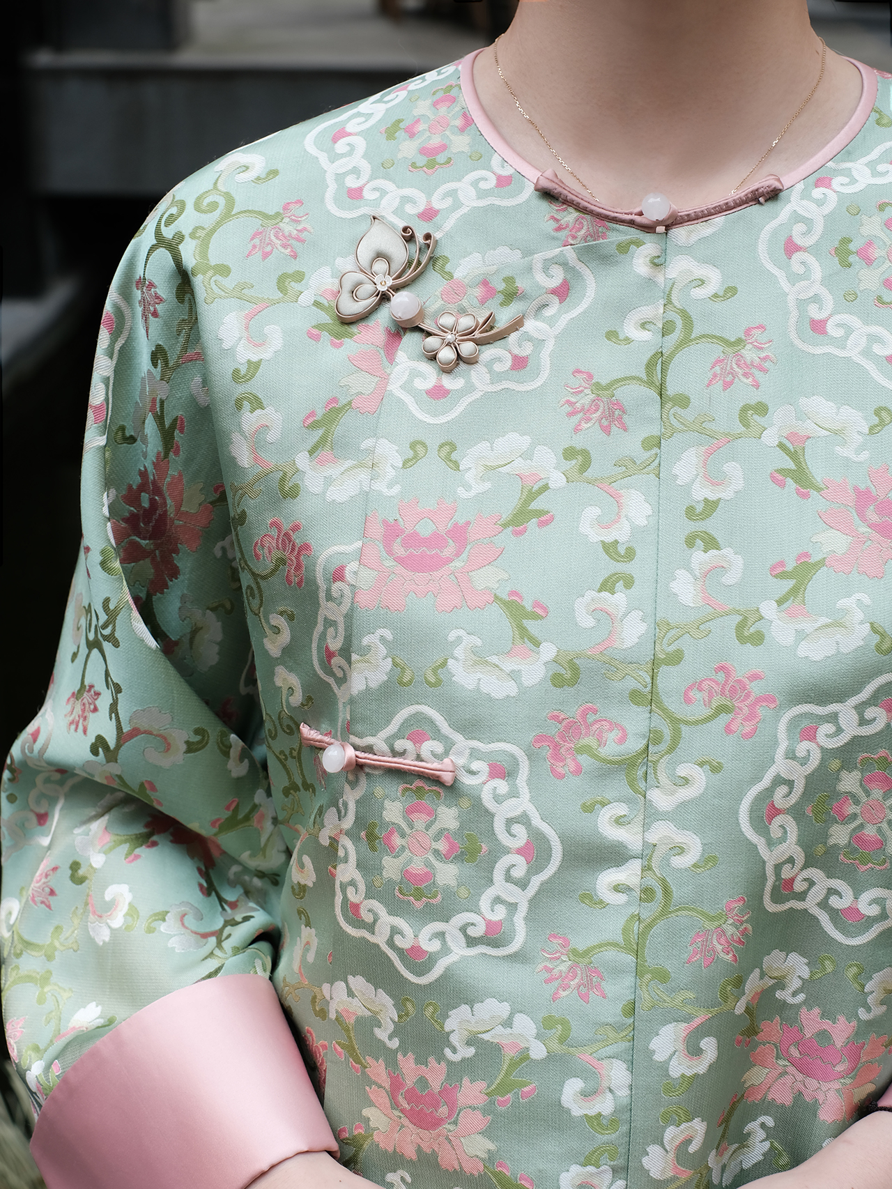 盛唐牡丹 |宝相花重缎宋锦偏襟上衣