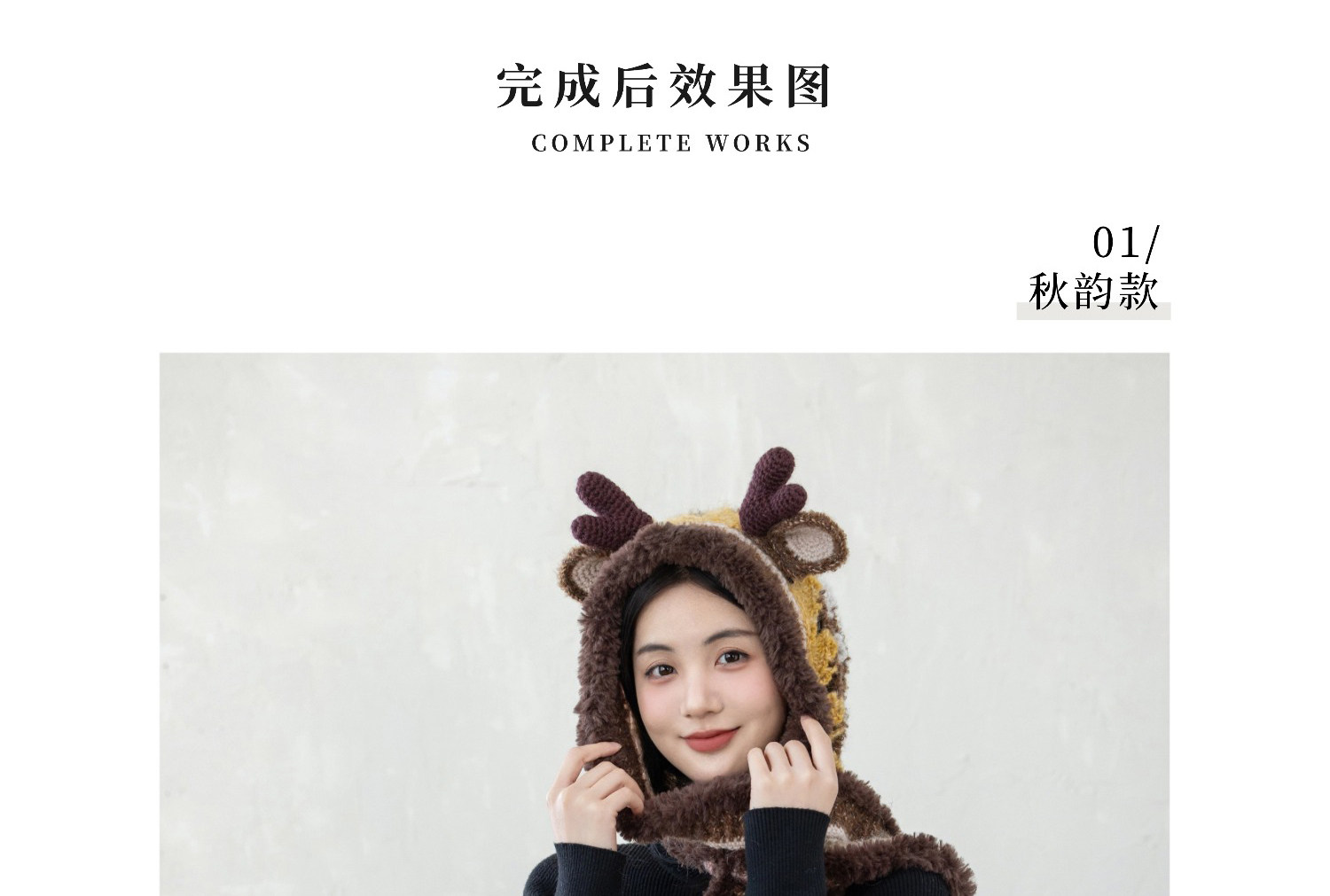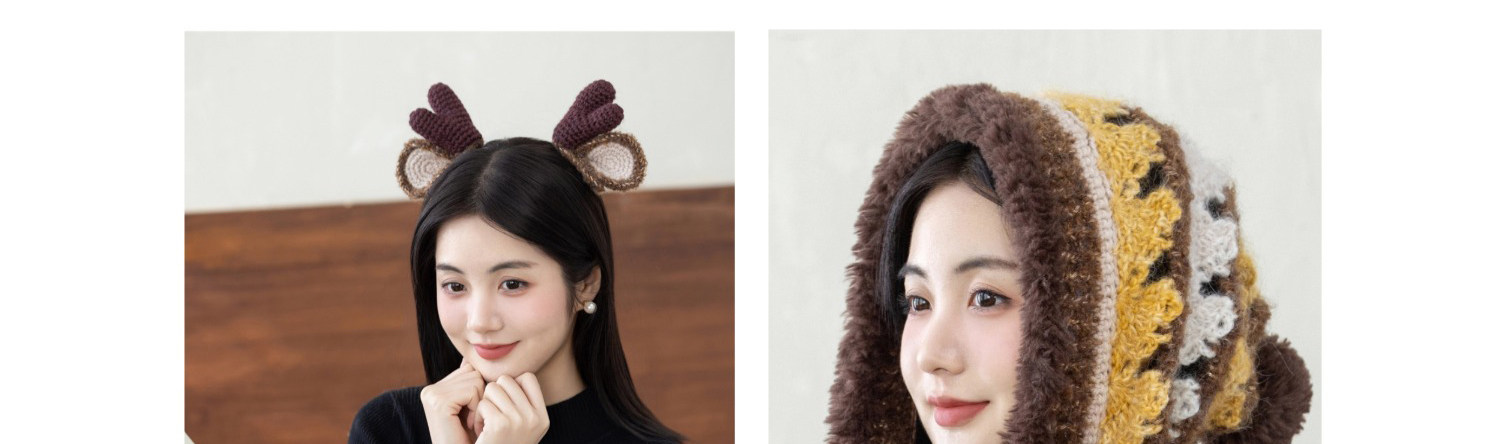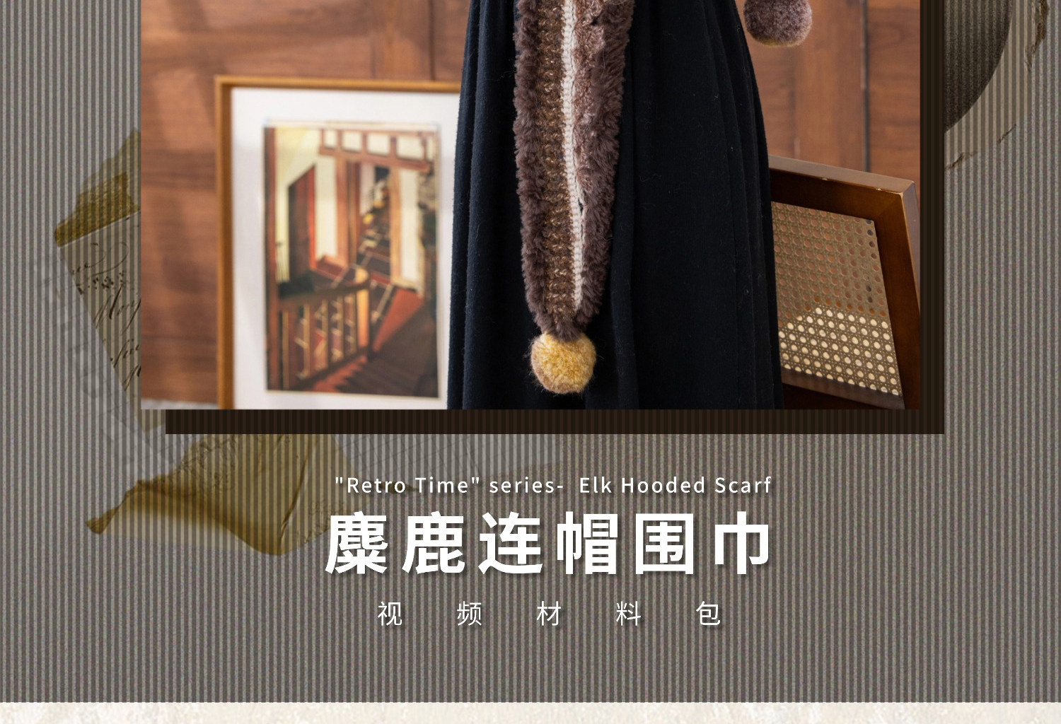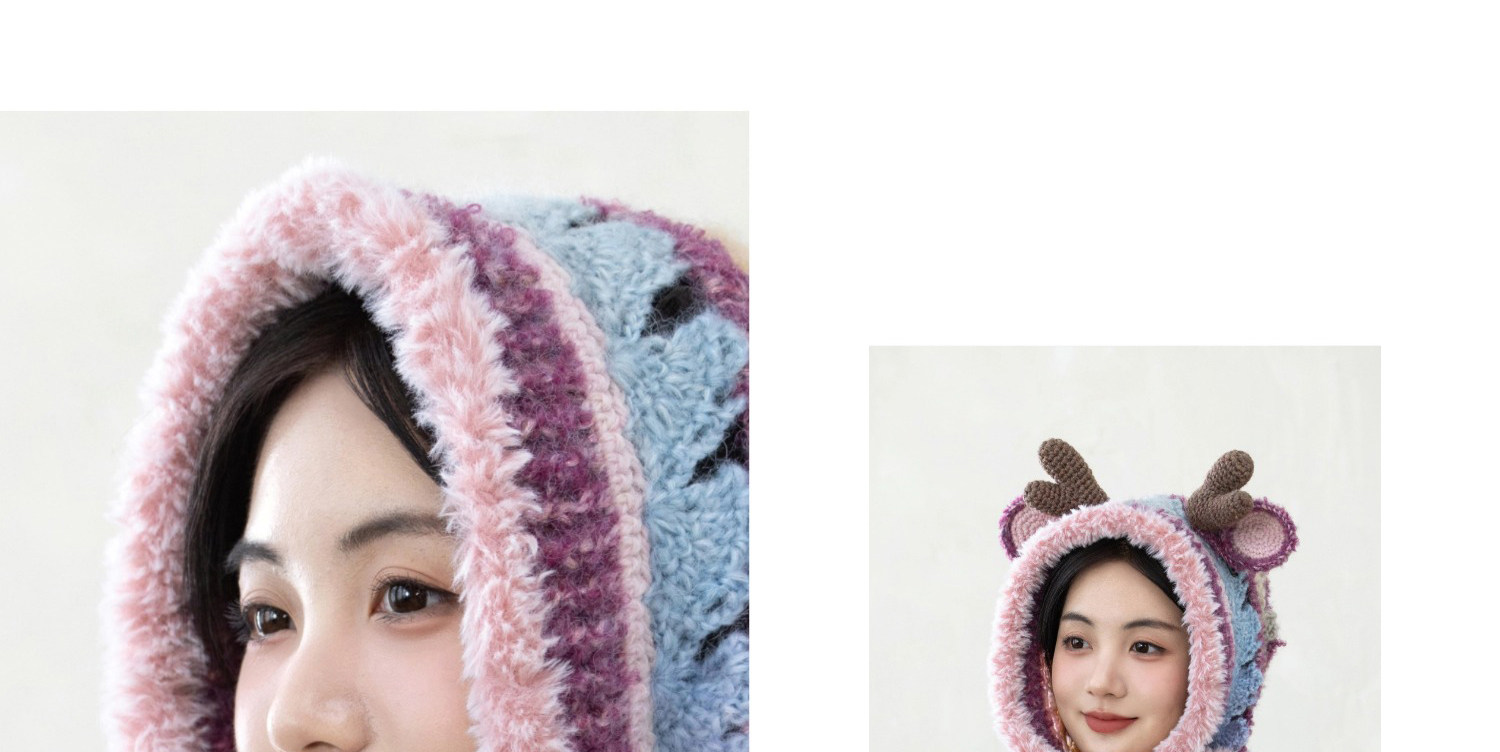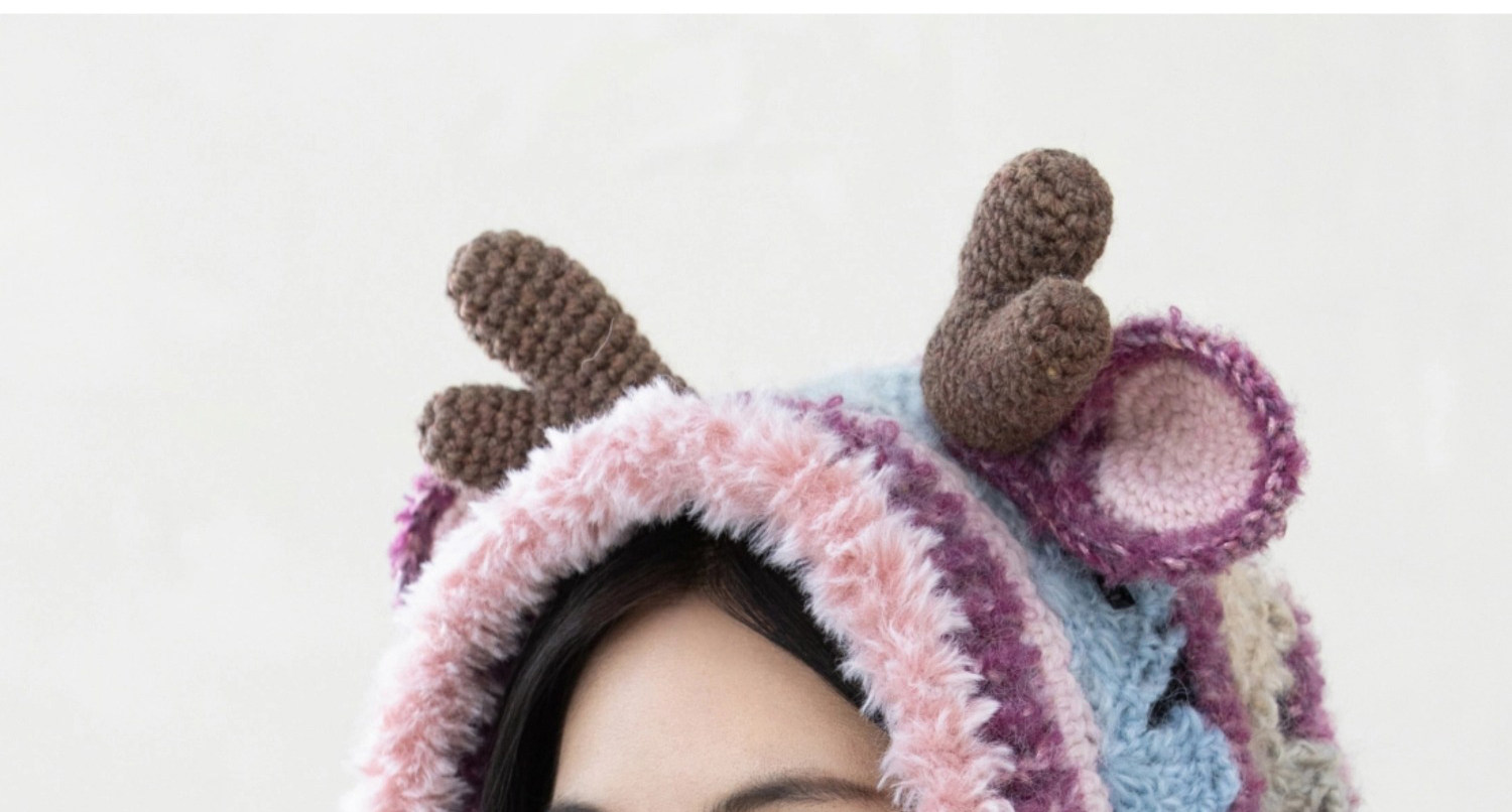 苏苏姐家麋鹿连帽围巾手工diy钩针编织毛线团冬季自制材料包