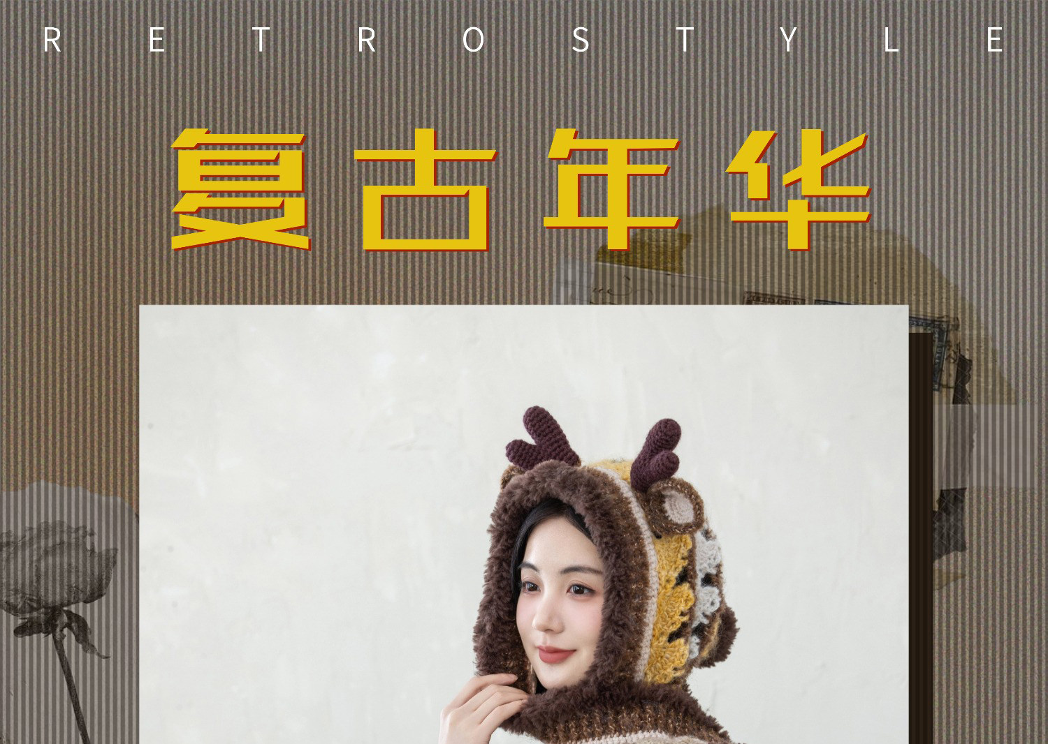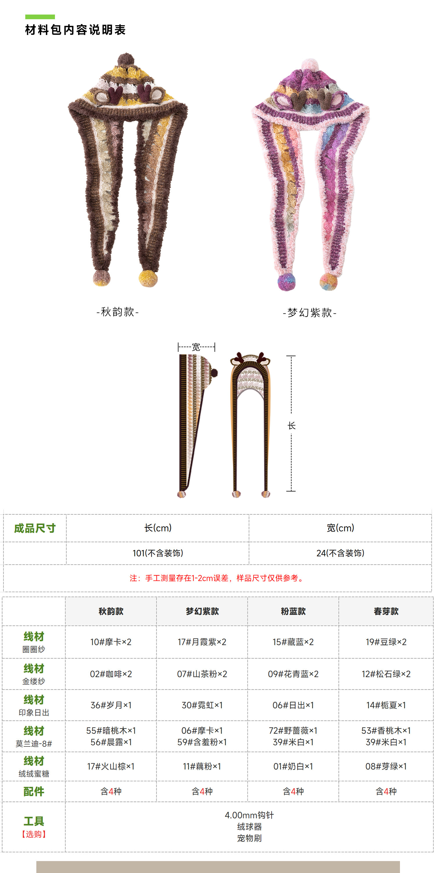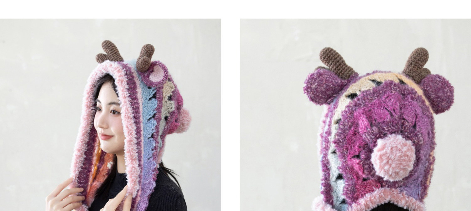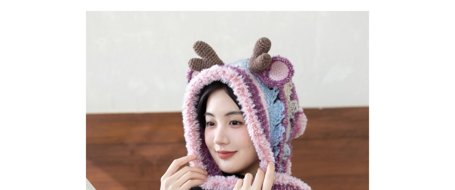 苏苏姐家麋鹿连帽围巾手工diy钩针编织毛线团冬季自制材料包