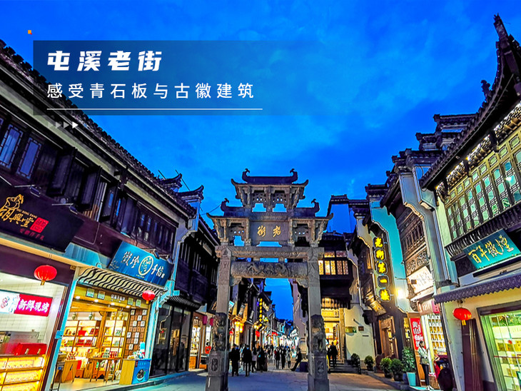 除了黄山风景区的壮美景色,黄山市区已有千年历史的屯溪老街,以及老街上同样历史悠久的徽菜馆、文房四宝店是了解黄山、了解徽州文化的最佳去处。