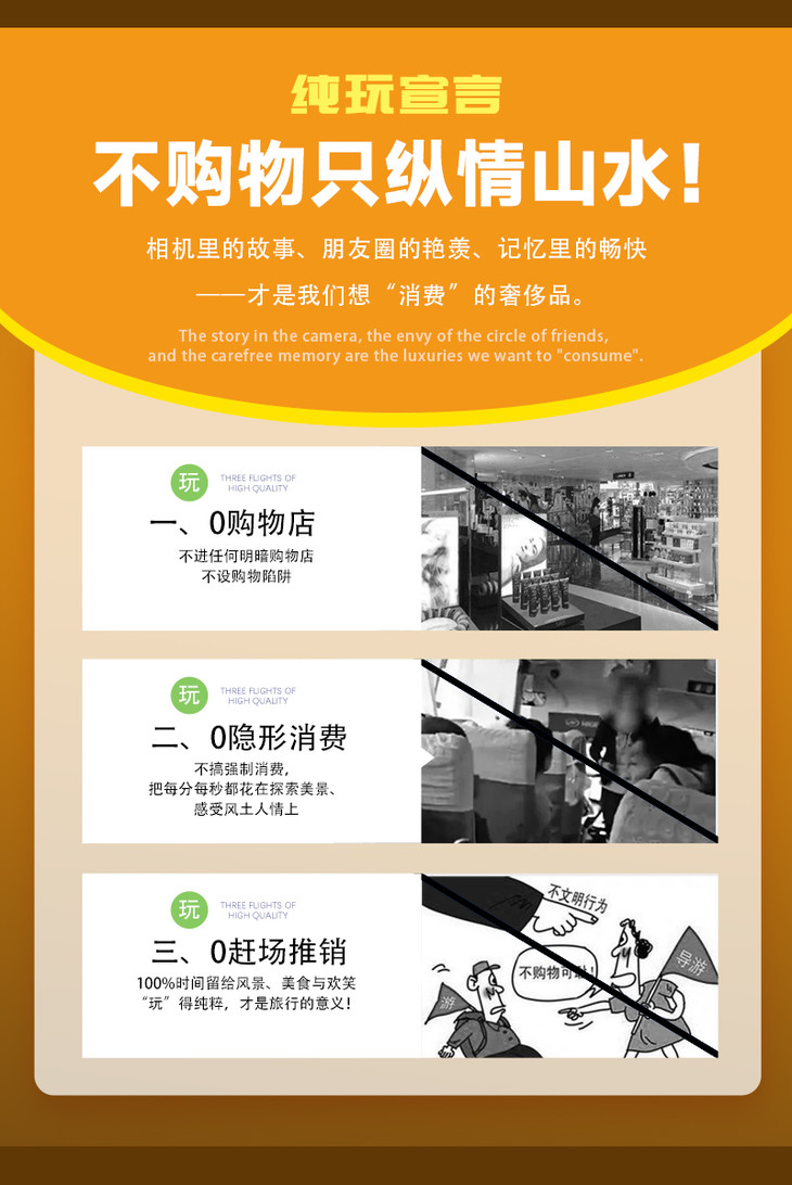 1)本活动属于户外旅行活动,纯玩,全程不进购物店,没有任何形式购物环节,领队也不作购物推荐,敬请谅解;同时本活动所有费用已明示(包括有可能您自愿自费的项目),无其它任何收费,请您仔细阅读费用包含和费用不含内容。