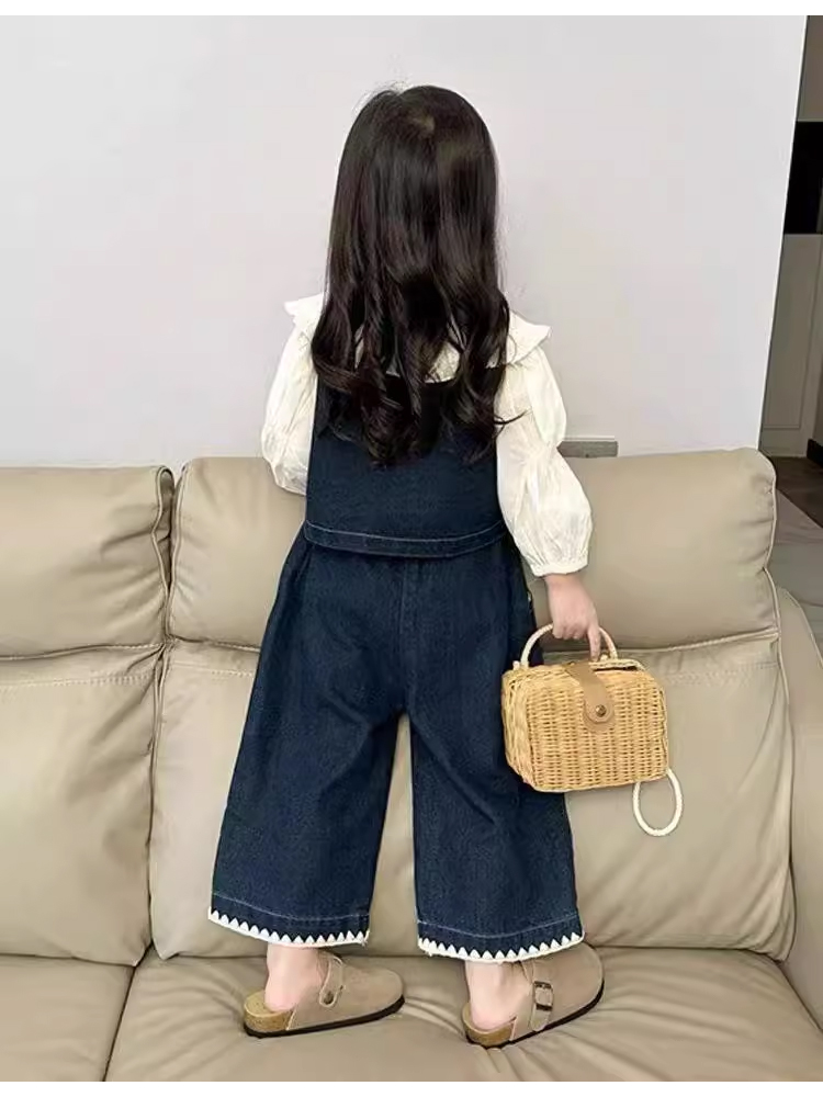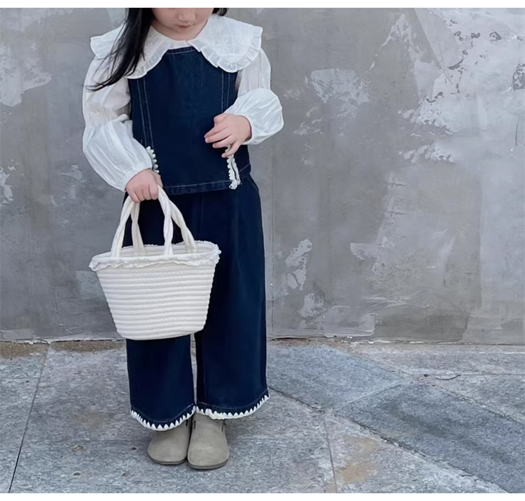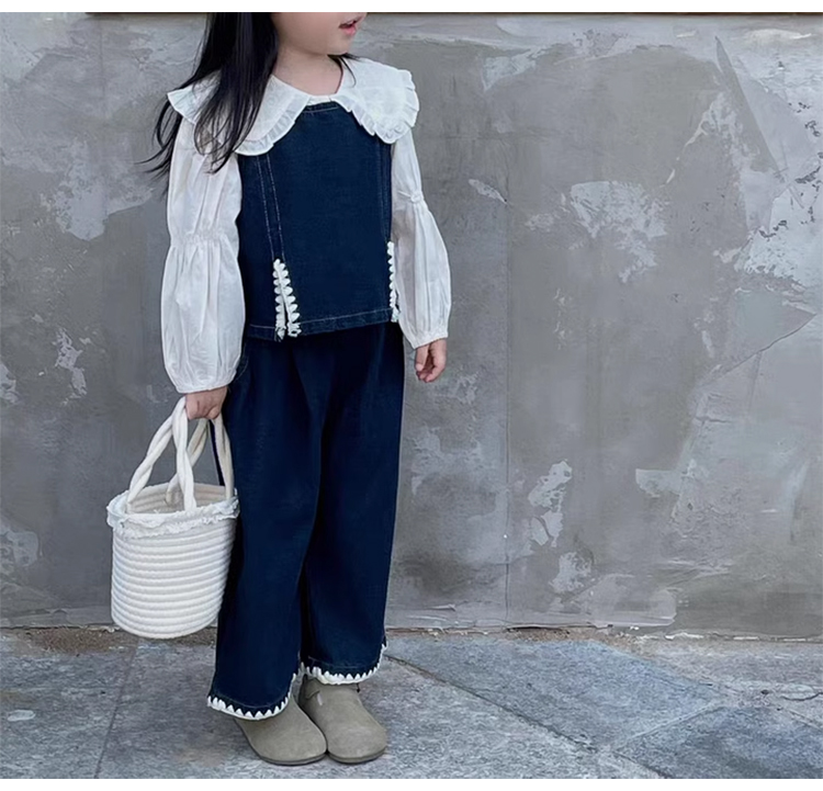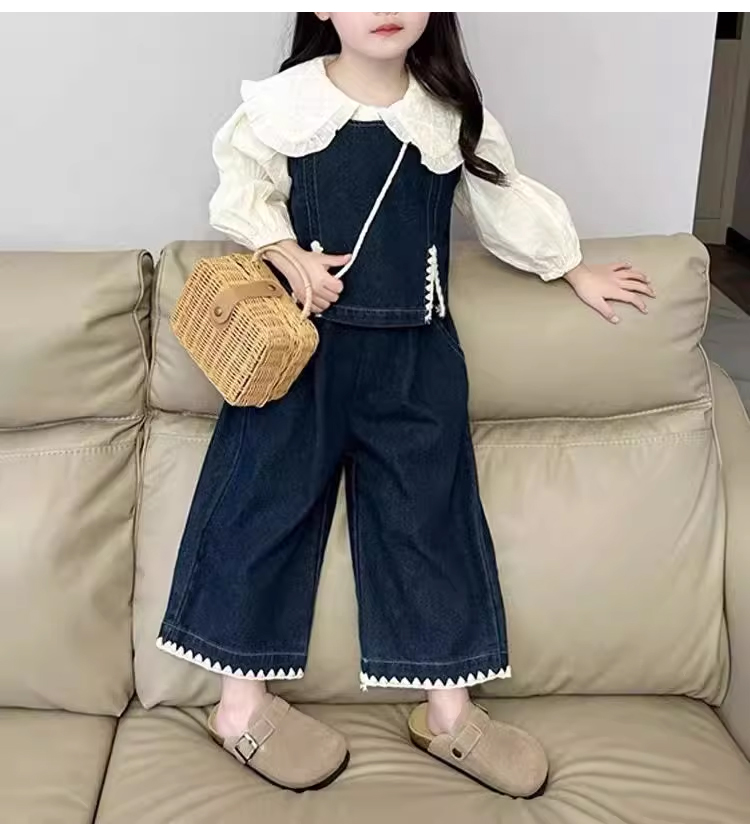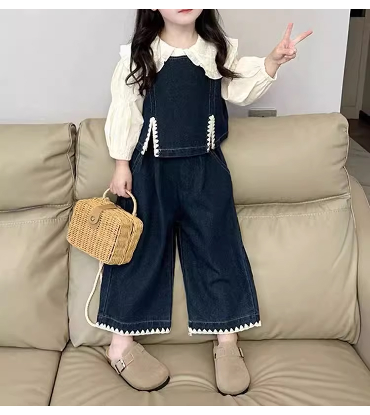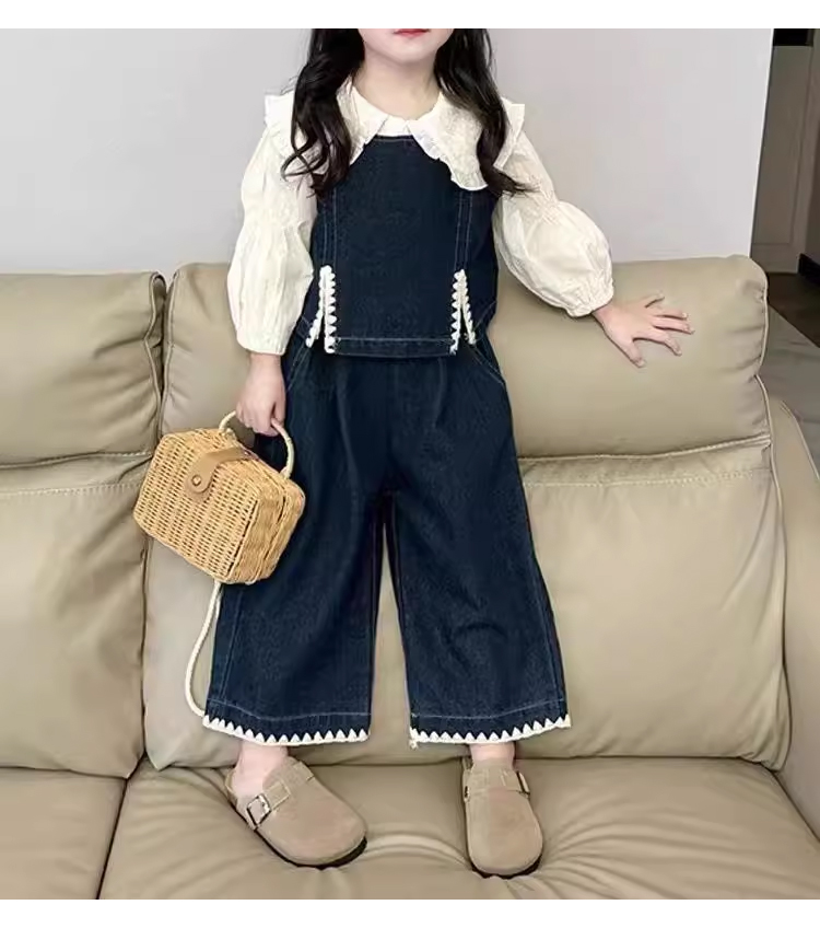 裁缝学苑TQ137秋季新款女童时髦翻领衬衫套装中小童洋气百搭牛仔马甲休闲裤