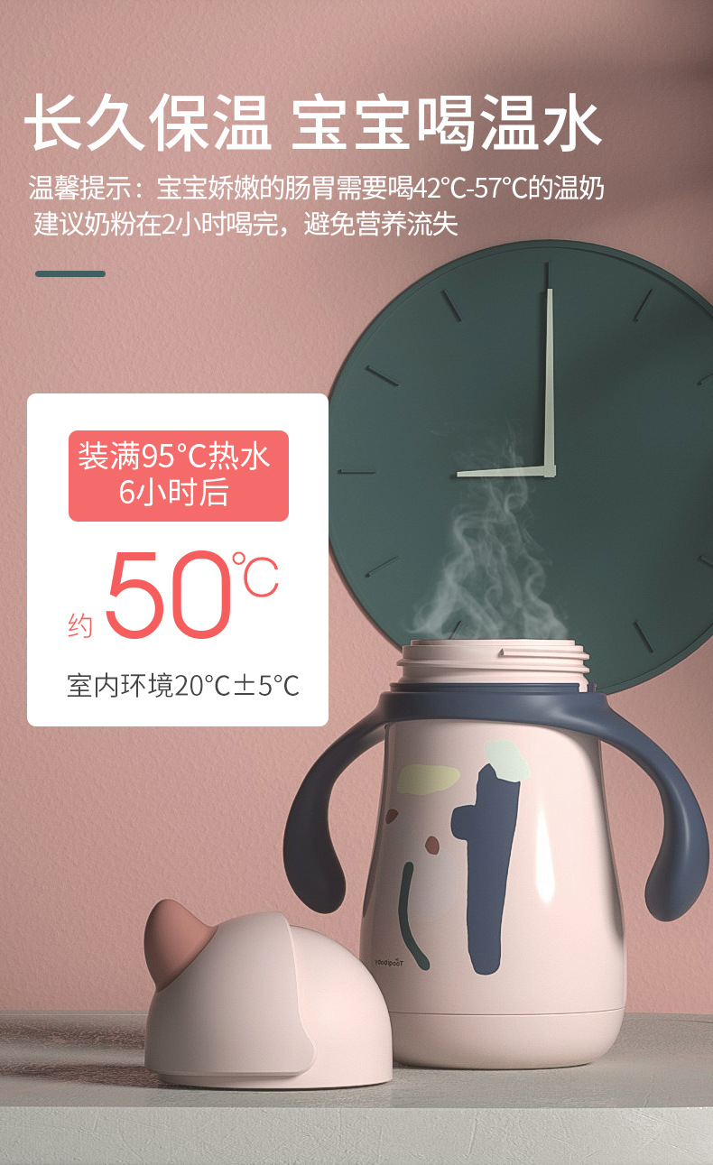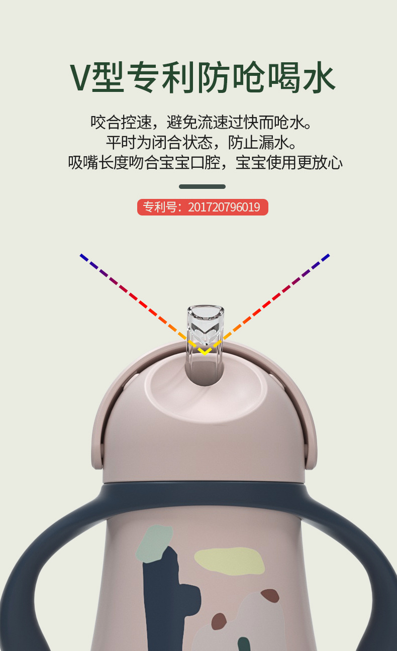【宝宝用品】*宝宝不锈钢保温水杯带手柄婴儿学饮杯鸭嘴饮水两用吸管杯