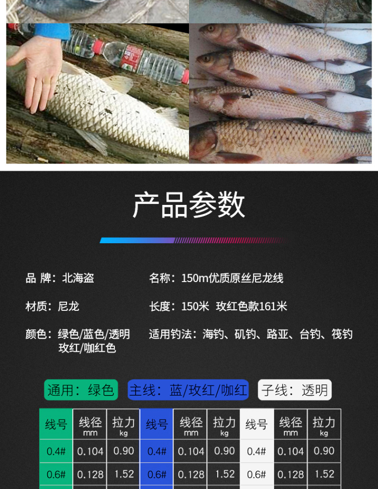 【运动装备】-北海盗鱼线主线子线进口钓鱼线超柔软拉力路亚线尼龙渔线